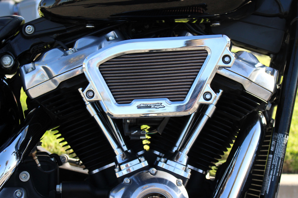 2022 Harley-Davidson® Softail Standard (FXST) — Screamin’ Eagle® air cleaner, slip-ons, custom chrome riser and bars, and Performance Machine grips.