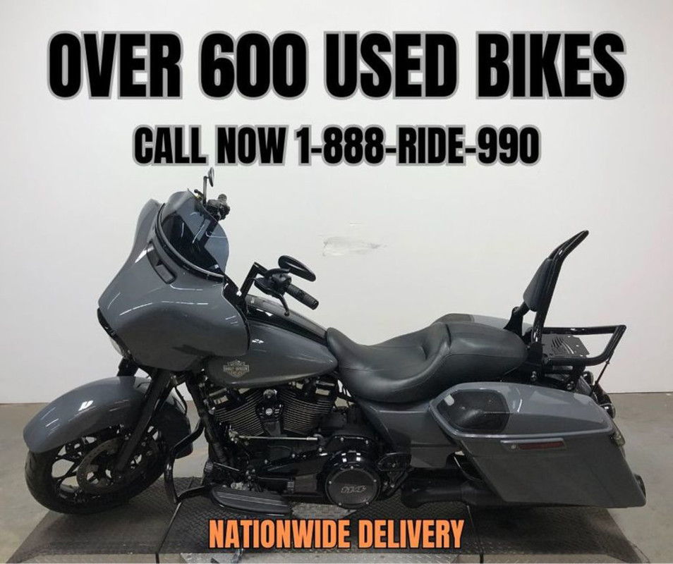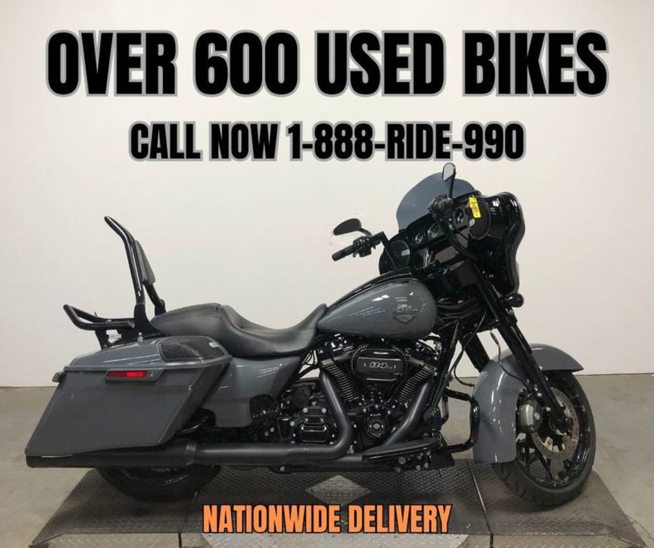 USED HARLEY STREET GLIDE SPECIAL FOR SALE WITH ONLY 2,127 MILES! HARD TO FIND COLOR! "GUNSHIP GREY"! BLACKOUT PACKAGE, BLACKOUT WHEELS, BLACKOUT FRONT END, BLACKOUT CONTROLS, BLACKOUT MOTOR, BLACKOUT EXHAUST, AND OVER $2,000 IN EXTRAS! SUICIDE CHOPPER HANDLE BARS, MATCHING SUICIDE CHOPPER QUICK RELEASE BACKREST & MATCHING SUICIDE CHOPPER QUICK RELEASE LUGGAGE RACK, AND THE DUAL RINEHART EXHAUST SOUNDS GREAT! OVERSIZED L.E.D. SCREEN, BLUE TOOTH STEREO, NAVIGATION SYSTEM, CRUISE CONTROL, SECURITY SYSTEM, AND MORE! SOLD NEW FOR $31,000, BLUE BOOK IS OVER $29,000! THIS ONE IS A DEAL!