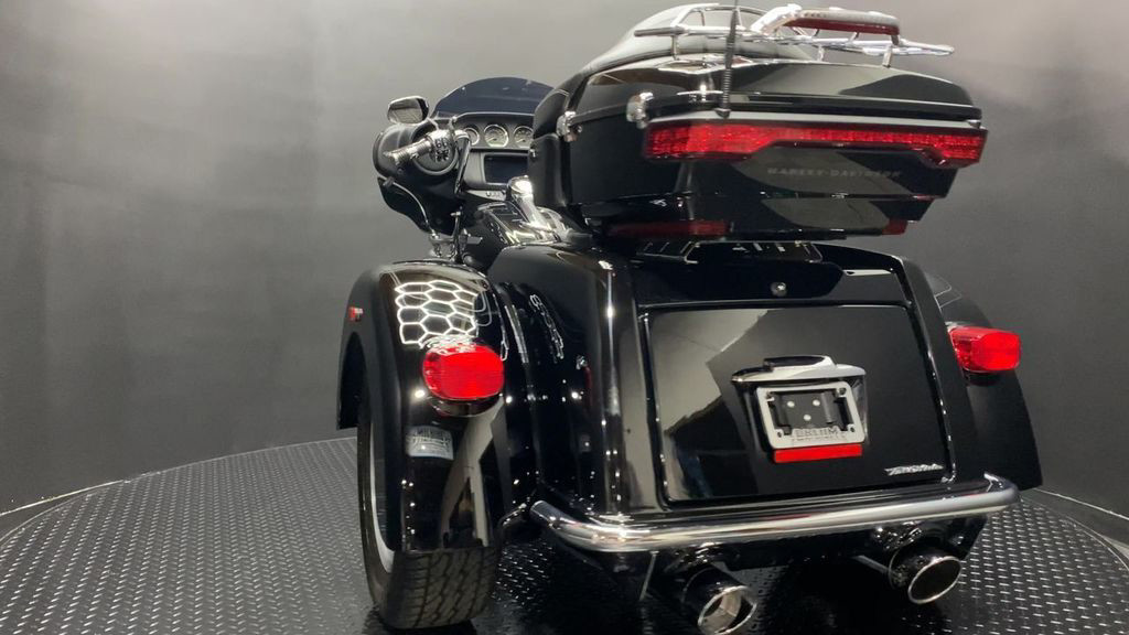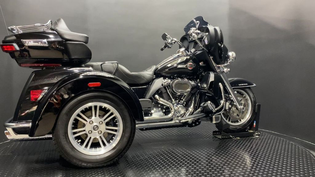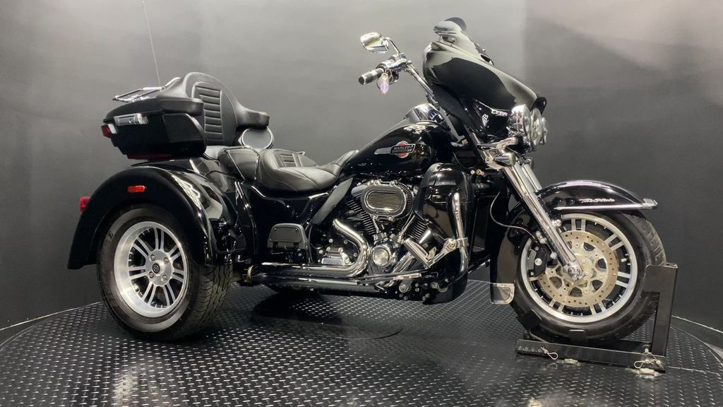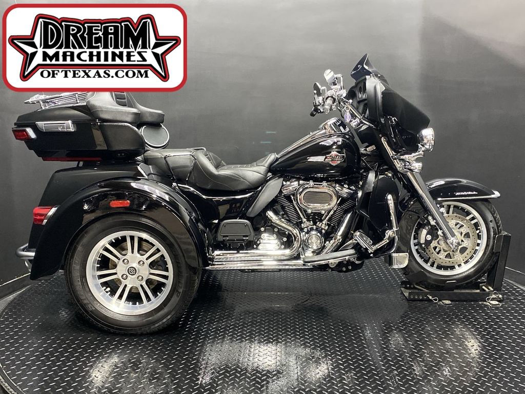 YOU ARE LOOKING AT A 2022 HARLEY DAVIDSON TRI-GLIDE ULTRA CLASSIC (FLHTCUTG) WITH 6,713 MILES ON IT. IT IS VIVID BLACK IN COLOR AND POWERED BY A 1868CC (114") FUEL INJECTED MILWAUKEE EIGHT ENGINE AND 6 SPEED TRANSMISSION WITH STARTER AIDED REVERSE. THE BIKE COMES WITH ABS BRAKES, CRUISE CONTROL, NAVIGATION, 1 KEY, 1 FOB, AND FACTORY SECURITY SYSTEM. THERE ARE SOME EXTRAS ON THE BIKE WHICH INCLUDE PERFORMANCE SLIP-ON MUFFLERS ($699.95), SCREAMIN' EAGLE AIR CLEANER ($249.95), MUSTANG SEAT ($1,090.95), FRONT END ($549.95), TRUNK GUARD ($349.95), LUGGAGE RACK ($124.95), HIGHWAY PEGS ($179.95), KLOCKWERKS WINDSHIELD ($179.95), GRIPS ($129.95), SWITCH HOUSINGS ($149.95), LEVERS ($79.95), BRAKE/CLUTCH PERCH ($399.95), BRAKE/CLUTCH LEVERS ($79.95), AND MASTER CYLINDER COVER ($39.95). THE BIKE HAS A SMALL IMPRESSION AND TOUCHUPS ON THE FRONT FENDER, RIGHT INNER REAR FENDER, LEFT SIDE COVER, AND TANK. THE CHROME AND ALUMINUM ARE IN GOOD CONDITION WITH THE EXCEPTION OF FLAKING ON THE HIGHWAY PEGS. THE TIRES HAVE GOOD TREAD LEFT ON THEM.