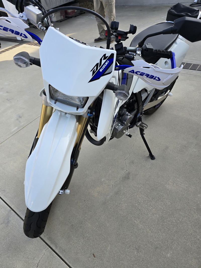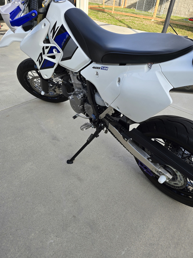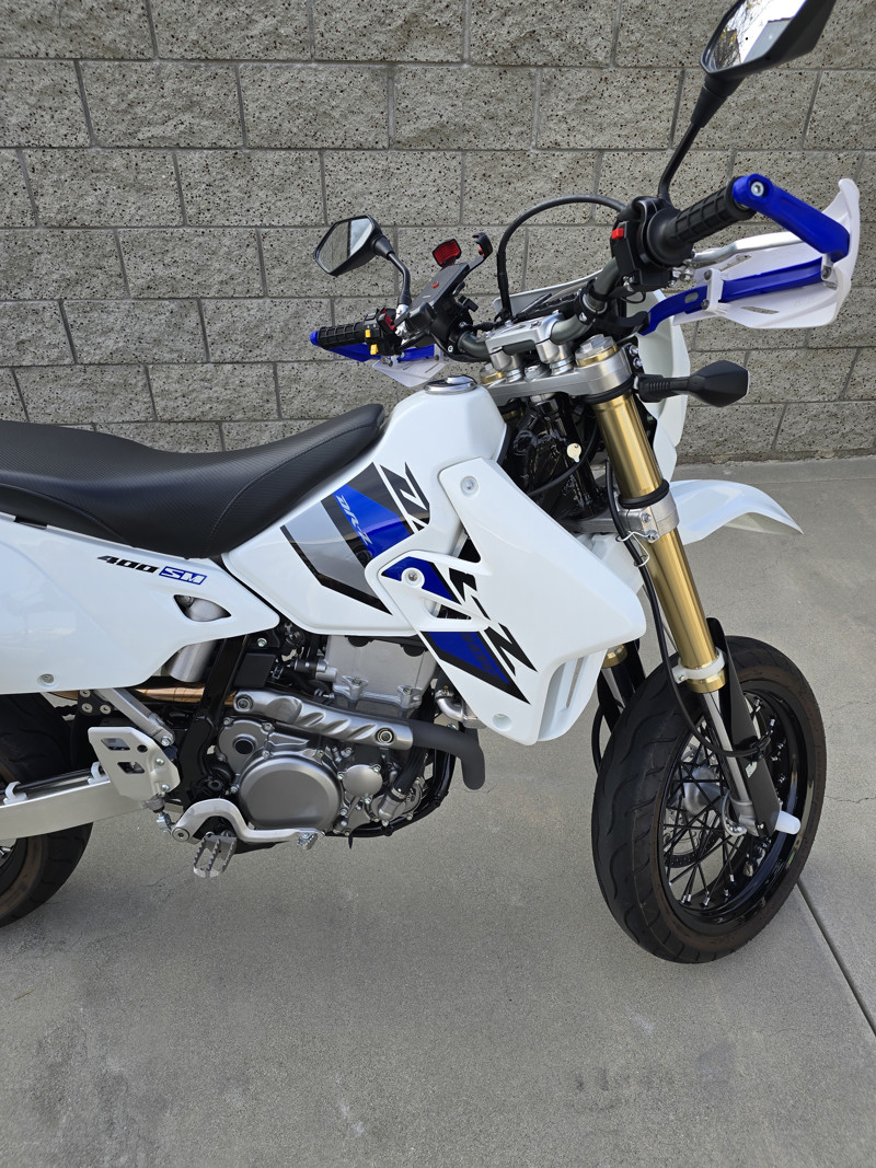 The Suzuki DR-Z400SM is a popular, street-legal Supermoto (SM) motorcycle known for its versatile fun, blending dirt bike agility with street performance using a reliable 398cc engine, 17-inch wheels, and adjustable suspension, making it great for twisty roads, commuting, and even track days, making it a beloved, simple "jack-of-all-trades" for riders seeking fun over cutting-edge features.