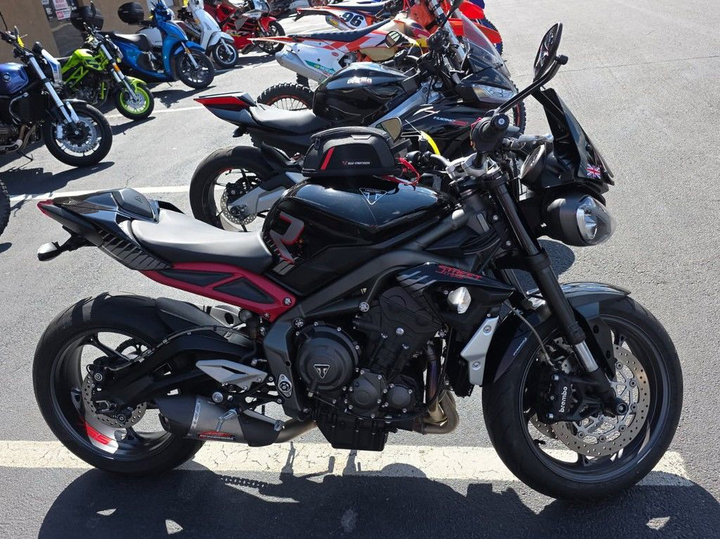 This motorcycle shares the more aggressive style, more responsive high performance 765cc triple engine, high equipment spec and all the dynamic agile riding capability that the Street Triple R is renowned for.