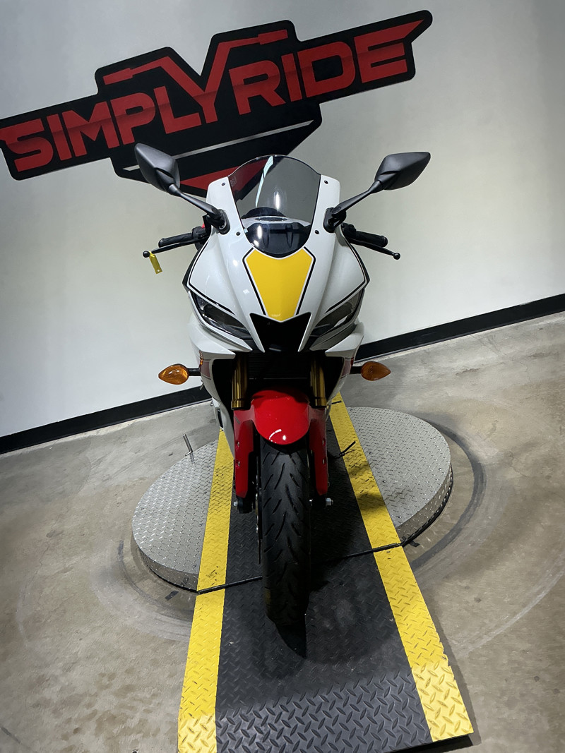 Same advanced twin cylinder engine, same ultra-lightweight flickable chassis, now with brilliant World GP 60th Anniversary Edition styling.