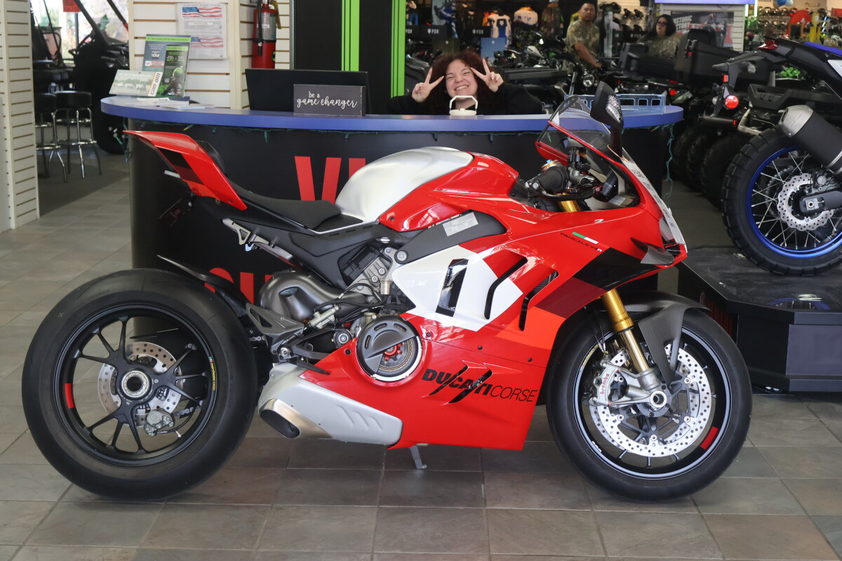 The 2023 Ducati Panigale V4 R is a high performance superbike built for the track, featuring a 998cc Desmosedici Stradale R V4 engine that delivers exhilarating power and race derived technology. It combines lightweight aerodynamics, advanced electronics (like corning ABS and traction control),and premium Ohlins suspension for razer sharp handling and blistering speed .