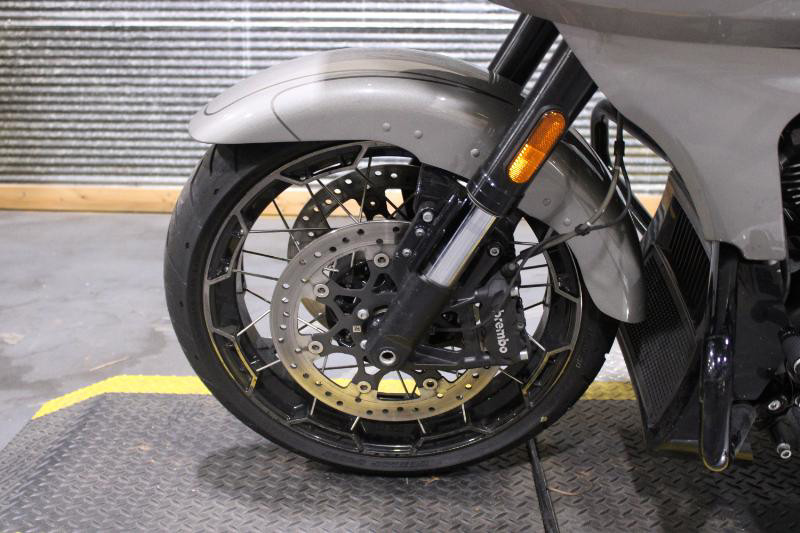 The 2023 H-D CVO/Custom is a striking motorcycle that embodies a perfect blend of power, style, and advanced technology. This used model, with an odometer reading of 19,945 miles, showcases the durability and reliability that H-D is renowned for. Its exterior is finished in a sophisticated Dark Platinum color, giving it a sleek and commanding presence on the road.