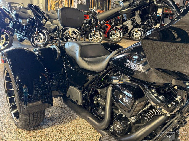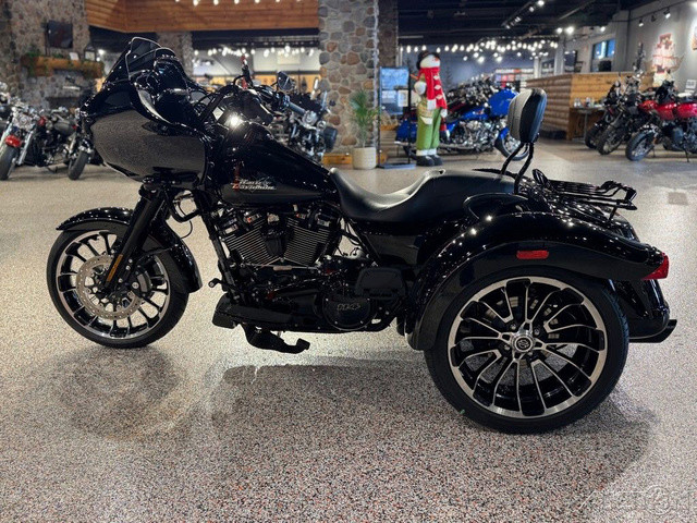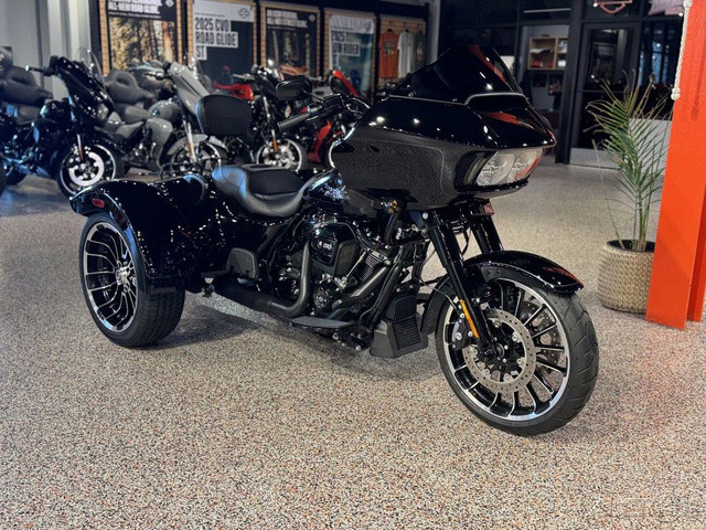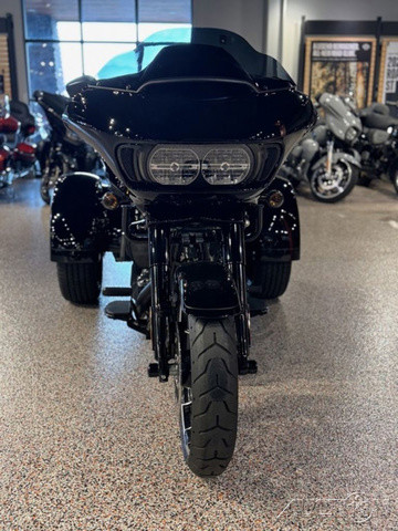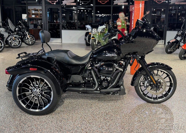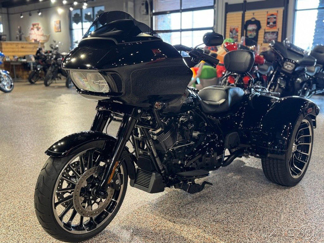 2023 Harley-Davidson® Road Glide® 3Commanding performance with sharknose style.The all-new 2023 Road Glide 3 combines the soul of a Road Glide with the comfort, convenience and confidence of a three-wheeler.Features may include:Milwaukee-Eight 114 V-Twin PowertrainWind Tunnel tested body-mounted Shark fairingDual Daymaker LED headlampsWHEELSBig, bold and beautiful 19 inch in front and 18 inch on rear.INFOTAINMENT SYSTEMBoom!™ Box GTS 6.5-inch color TFT touch screen navigation/infotainment system.ENGINE DESIGNV-Twin design with 45-degree cylinder angle maintains classic Harley-Davidson look-sound-feel.HEADLAMPSDual Daymaker LED headlamps cut through the night with a bright beam of daytime color light that’s easy on the eyes.ATTENTION GRABBINGElevate the outstanding style of the bike with optional bright chrome finish.