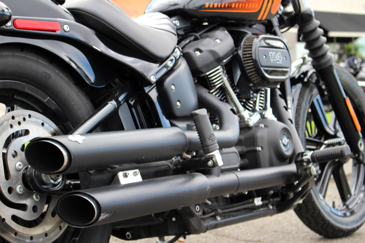 Take a look at this 2023 Harley-Davidson Street Bob 114 (FXBBS), customized with Vance & Hines Shortshots exhaust for that unmistakable Harley sound.