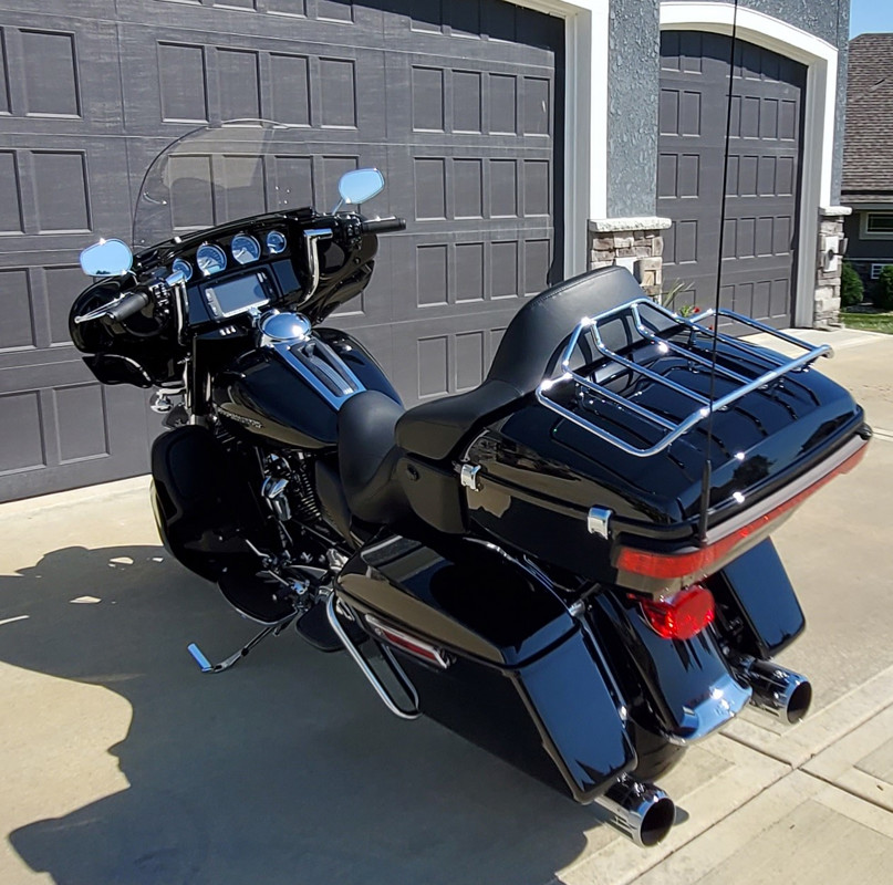 Hard saddlebags + large tour pack for ample storage