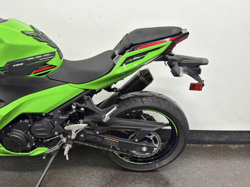 The Ninja® 400 sportbike offers the largest displacement in category at 399cc with the sophistication of twin-cylinder power. Approachable power, superb ergonomics and class-leading performance offer a smooth, manageable ride that's ideal for new riders while also alluring experienced riders. A low seat height and aggressive styling with LED headlights make the Ninja 400 the ideal choice for riders looking to enter the sport-riding scene.