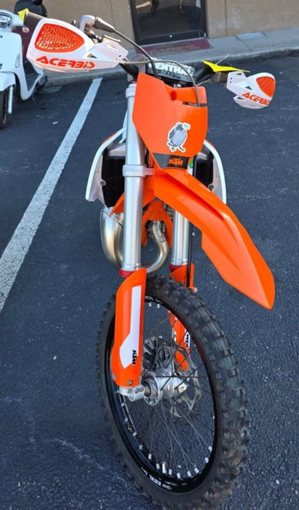 DecalsRocking an all-new white and orange color plastics combination and orange seat cover - not to mention bold, black, orange and purple graphics - the 2023 KTM 85 SX lines up behind the gate with pure race-winning intent.