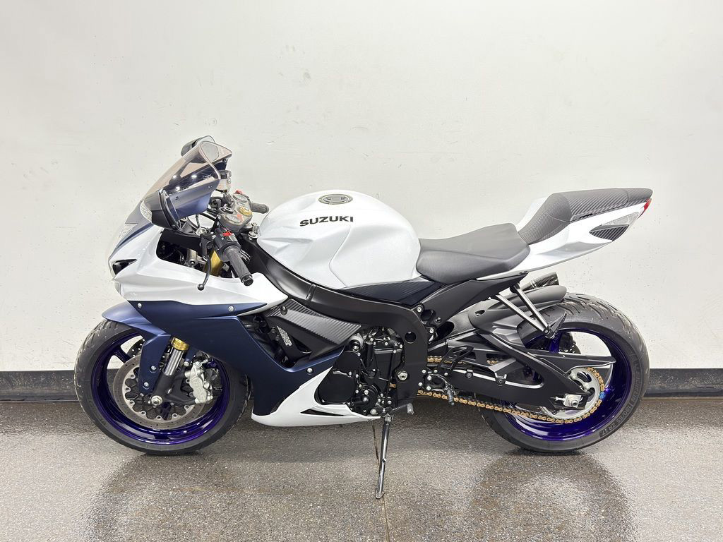 The 2023 GSX-R750 is available in new Pearl Brilliant White and Metallic Matte Stellar Blue, or Glass Sparkle Black and Glass Matte Mechanical Gray paint schemes.