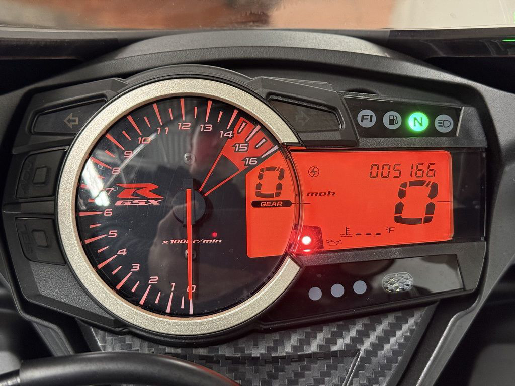 The GSX-R750’s fuel-injected, 750cc, four-cylinder engine powers a balanced sportbike experience. This engine pulls strong off the bottom like a larger-displacement powerplant while it builds revs like a smaller mill – it’s the best of both worlds.