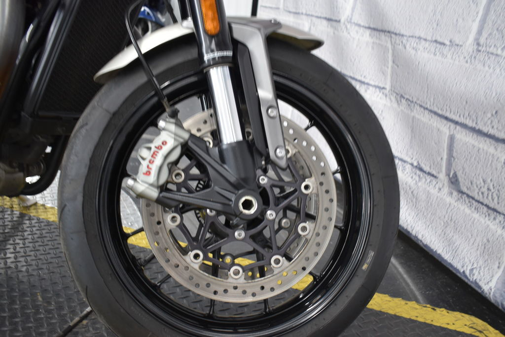 Confident and assured braking comes courtesy of powerful premium specification Brembo four-piston M50 radial monobloc calipers, high performance 320mm floating discs and the latest generation ABS.