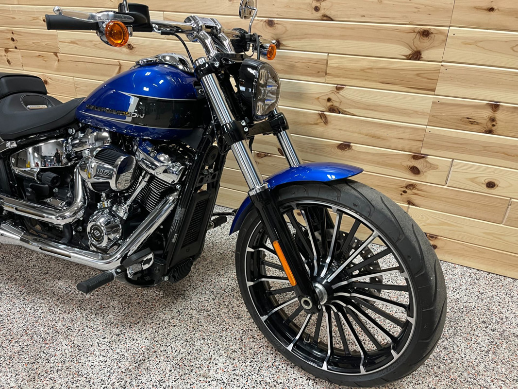 Dripping with chrome, the Harley-Davidson Breakout 117 is a raked-out cruiser that packs Milwaukee-Eight™?117 V-Twin muscle.