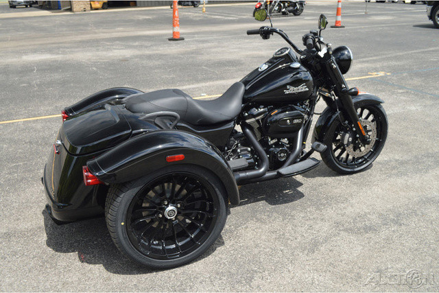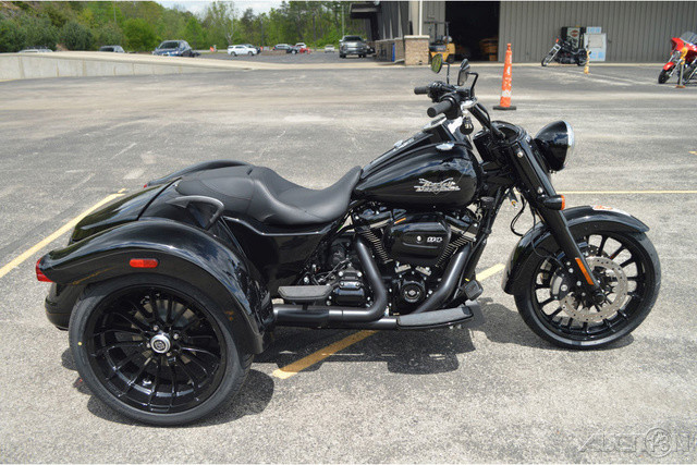 2024 Harley-Davidson® Freewheeler®THREE WHEELS TO FREEDOM.Features may include:MILWAUKEE-EIGHT® 114 ENGINELoads of torque for on-demand power you can feel with each twist of the throttle, accompanied by that evocative H-D sound.RIDER SAFETY ENHANCEMENTSIncrease road confidence with trike-specific Rider Safety Enhancements, including Cornering Enhanced Electronic Linked Braking (C-ELB), Cornering Enhanced Antilock Braking System (C-ABS), Cornering Enhanced Traction Control System (C-TCS), and Drag-Torque Slip Control System (DSCS).THROW IT IN REVERSEElectric reverse gear makes it easy to move your trike in and out of parking spaces.TRUNK SPACEThe weather-proof rear trunk has a top-mounted door for easy loading.REAR VIEWBobtail rear fenders and slash cut pipes add unabashed personality.SINISTER STYLINGBlacked-out attitude, from the front end and tank console to the powertrain and exhaust.CHASSISEngineered by Harley-Davidson exclusively for three-wheeled vehicles to optimize handling and performance.