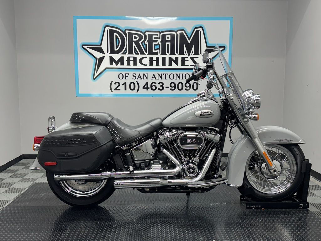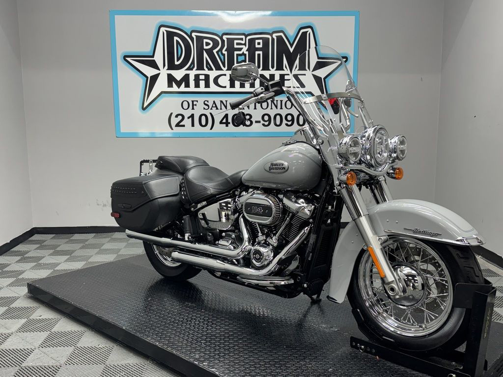*BOOK VALUE IS $22,294 SHIPPING, LEASING, FINANCING AND EXTENDED WARRANTY MAY BE AVAILABLE! YOU ARE LOOKING AT A 2024 HARLEY DAVIDSON HERITAGE CLASSIC (FLHCS) WITH 3,102 MILES ON IT. IT IS BILLIARD GRAY IN COLOR AND POWERED BY A 1868CC (114") FUEL INJECTED MILWAUKEE EIGHT ENGINE AND 6 SPEED TRANSMISSION. THE BIKE COMES WITH ABS BRAKES, CRUISE CONTROL, 1 KEY, 1 FOB, AND FACTORY SECURITY SYSTEM. CHROME COBRA SLIP-ON MUFFLERS ($388.95) HAVE BEEN ADDED TO THE BIKE. THERE ARE NO SCRATCHES, DENTS, OR DINGS THAT I CAN FIND WITH THE EXCEPTION OF SCUFFS ON THE RIGHT LEATHER SADDLEBAG. THE CHROME AND ALUMINUM ARE IN GOOD CONDITION. THE TIRES HAVE GOOD TREAD LEFT ON THEM.