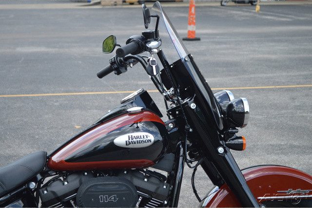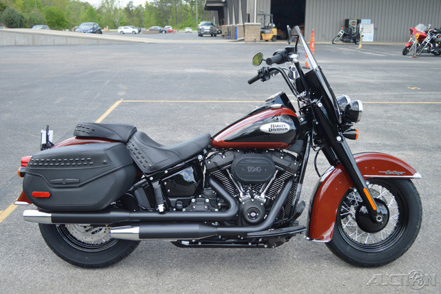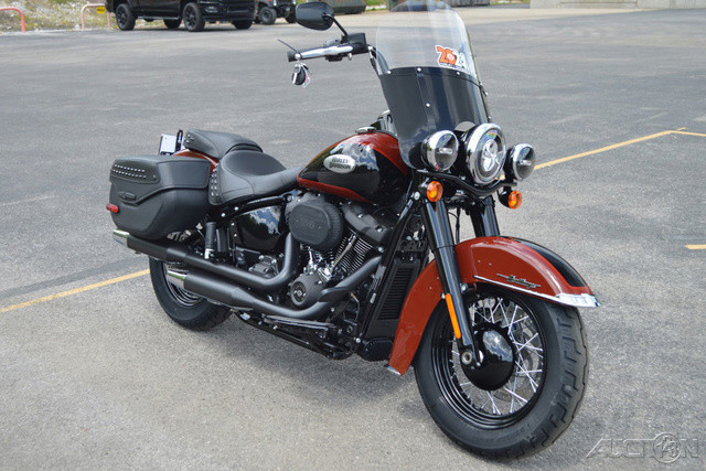 2024 Harley-Davidson® Heritage ClassicALWAYS IN STYLE.Features may include:MILWAUKEE-EIGHT® 114 ENGINELoads of torque for on-demand power you can feel with each twist of the throttle, accompanied by that evocative H-D sound.HIGH-PERFORMANCE REAR MONO SHOCKEasily adjustable mono-shock rear suspension allows for dynamic cornering capability while preserving the hardtail look.DETACHABLE WINDSCREENGo from touring to cruising in a heartbeat; leave the screen on for long hauls or remove it in seconds for a completely different look and ride.LOCKABLE SEALED SADDLEBAGSSleek and roomy, with enough space to stash your riding essentials.
