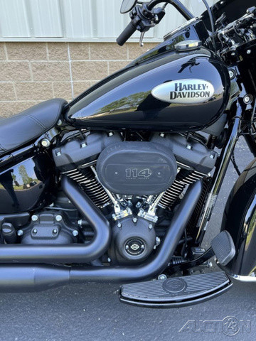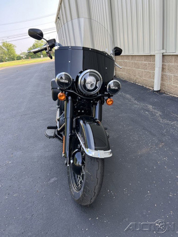 2024 Harley-Davidson® Heritage ClassicALWAYS IN STYLE.Features may include:MILWAUKEE-EIGHT® 114 ENGINELoads of torque for on-demand power you can feel with each twist of the throttle, accompanied by that evocative H-D sound.HIGH-PERFORMANCE REAR MONO SHOCKEasily adjustable mono-shock rear suspension allows for dynamic cornering capability while preserving the hardtail look.DETACHABLE WINDSCREENGo from touring to cruising in a heartbeat; leave the screen on for long hauls or remove it in seconds for a completely different look and ride.LOCKABLE SEALED SADDLEBAGSSleek and roomy, with enough space to stash your riding essentials.