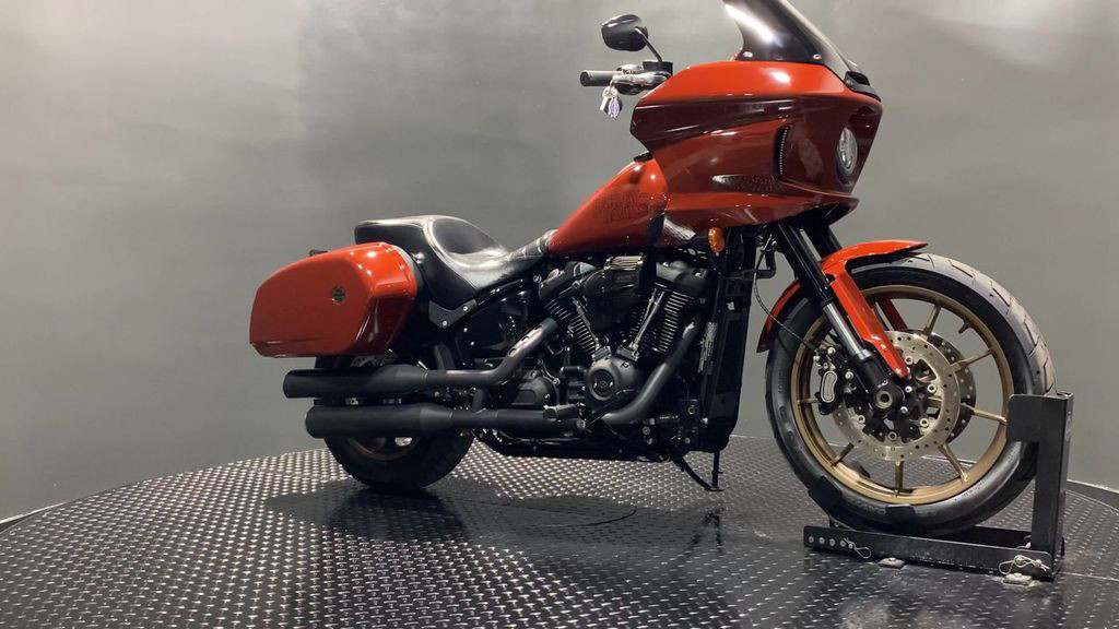 YOU ARE LOOKING AT A 2024 HARLEY DAVIDSON LOW RIDER ST (FXLRST) WITH 11,443 MILES ON IT. IT IS RED ROCK IN COLOR AND POWERED BY A 1923CC (117") FUEL INJECTED MILWAUKEE EIGHT ENGINE AND 6 SPEED TRANSMISSION. THE BIKE COMES WITH ABS BRAKES, CRUISE CONTROL, 2 KEYS, 1 FOB, AND FACTORY SECURITY SYSTEM. THERE ARE SOME EXTRAS ON THE BIKE WHICH INCLUDE A SUNDOWNER SEAT ($353.95), SLIPSTREAM WINDSHIELD ($99.95). FAIRING VENT ACCENT LIGHTS ($149.95), AND ROCKFORD FOSGATE INNER FAIRING AUDIO ($1,149.95). THERE ARE NO DENTS OR DINGS THAT I CAN FIND. THERE ARE SCRATCHES ON THE FRONT FENDER, REAR FENDER, LEFT SADDLEBAG, AND TANK. THE CHROME AND ALUMINUM HAVE SCRATCHES ON THE BRAKE LEVER AND SMALL TOUCHUPS ON THE EXHAUST. THE TIRES HAVE GOOD TREAD LEFT ON THEM.