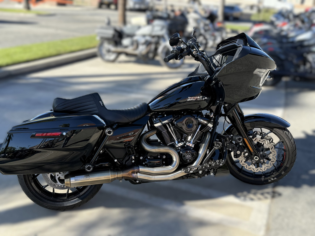 2024 Harley-Davidson® Road Glide (FLTRX) — low miles, Bassani exhaust, S&S air cleaner, La Pera seat, Thrashin’ bars/risers, Flo floorboards, and Baja Designs LED lower lights.