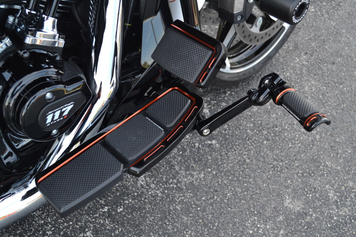 Custom Pinstriping by RoachScreamin' Eagle Stage II KitScreamin' Eagle Air Cleaner - Extreme WedgeScreamin Eagle Derby CoverKhrome Werks 2-into-1 exhaustKlock Werks Orange Ice Flare WindshieldH-D Fused HandlebarH-D Flat-Out BarH-D Saddlebag Tip-Over Bar SetWillie G Skull front axle nut coversH-D Adversary Collection AccessoriesRider FloorboardsRear Brake PedalShifter PegsHighway PegsPassenger PegsHeated HandgripsMirrors
