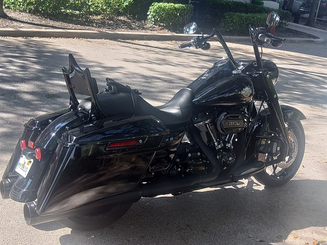 Virtually brand new Road King with 4K in extras, custom 3 spike back rest sissy bar, raised handle bars and Rhinehart slip on exhaust. Road kings are discontinued in 2026 and a leftover 2025 will cost you over 30K out the door, perfect chance to pick up the last of these beautiful bikes