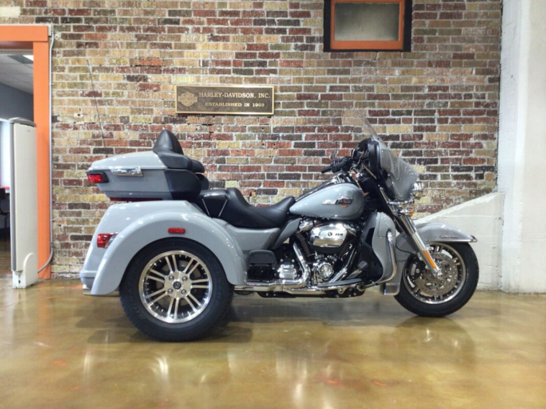 FULLY LOADED AND UNINHIBITED. Roll with confidence, comfort, and head-turning custom style on three wheels. The 2024 Tri Glide Ultra is a long-haul touring trike with all the torque, style, premium infotainment, and cargo space three wheels can hold. Get all the premium features, starting with a Twin-Cooled Milwaukee-Eight 114 engine, the BOOM! Box GTS infotainment system and enough storage space so you can pack enough to go for a good, long time. HIGHLIGHTS: • Upright riding position. • Floorboards. • Passenger seat with backrest. • Trunk. • Fork-mounted fairing. • Infotainment. • Rider safety enhancements are available. TWIN-COOLED MILWAUKEE-EIGHT 114 ENGINE Loads of torque for on-demand power you can feel with each twist of the throttle, accompanied by that evocative H-D sound. SIX-SPEED CRUISE DRIVE TRANSMISSION Provides smooth, quiet shifting and reduces engine speed on the highway, so you get a better match between engine RPM and road speed. BATWING FAIRING A pressure-equalizing duct on the batwing front fairing is designed to deliver smooth airflow and reduce head buffeting. BOOM! BOX GTS INFOTAINMENT SYSTEM An evolved interface experience that offers a contemporary look, feel, and function, with exceptional durability and features designed specifically for motorcycling. TRUNK AND KING TOUR-PAK STORAGE Integrated trunk offers 4.4 cubic feet of storage capacity, while the injection-molded Tour-Pak luggage carrier adds an additional 2.4 cubic feet of storage capacity. RIDER SAFETY ENHANCEMENTS? Increase road confidence with Trike-specific Rider Safety Enhancements, including Cornering Enhanced Electronic Linked Braking (C-ELB), Cornering Enhanced Antilock Braking System (C-ABS), Cornering Enhanced Traction Control System (C-TCS), and Drag-Torque Slip Control System (DSCS).? 2024 TOBACCO FADE ENTHUSIAST COLLECTION Harley-Davidson has inspired generations of musicians from every genre, and their songs have become our open-road anthems. Crafted at the crossroads of motorcycles and music, the 2024 Tobacco Fade Enthusiast Collection features a paint scheme that mimics the warm finishes from rock ‘n’ roll’s most famous guitars. TRI GLIDE ULTRA COLOR OPTIONS: • Billiard Gray • Vivid Black • Blue Burst • Red Rock/Vivid Black • Alpine Green/Vivid Black SPECIAL 2024 ENTHUSIAST COLOR OPTION: • Tobacco Fade Vehicles depicted may differ from vehicles manufactured and delivered. Specifications and prices listed may differ from specifications and prices of vehicles manufactured and delivered. All product descriptions (including depictions, specifications, dimensions, measurements, ratings and competitive comparisons) are based on available information at the time of publication. Although such descriptions are believed correct, errors and changes can occur and complete accuracy cannot be guaranteed. Harley-Davidson may make changes at any time to prices and specifications, and may change or discontinue models, without notice and without incurring any obligation. Please check with your dealer for complete product details and the latest information.