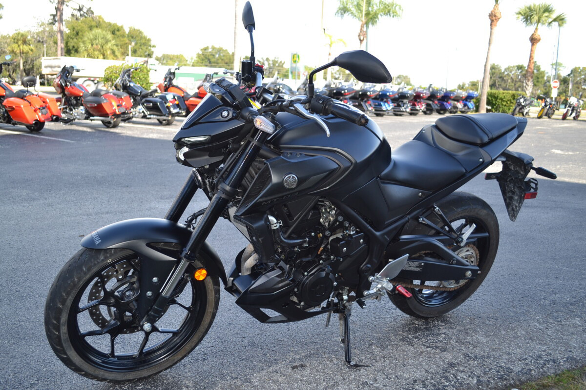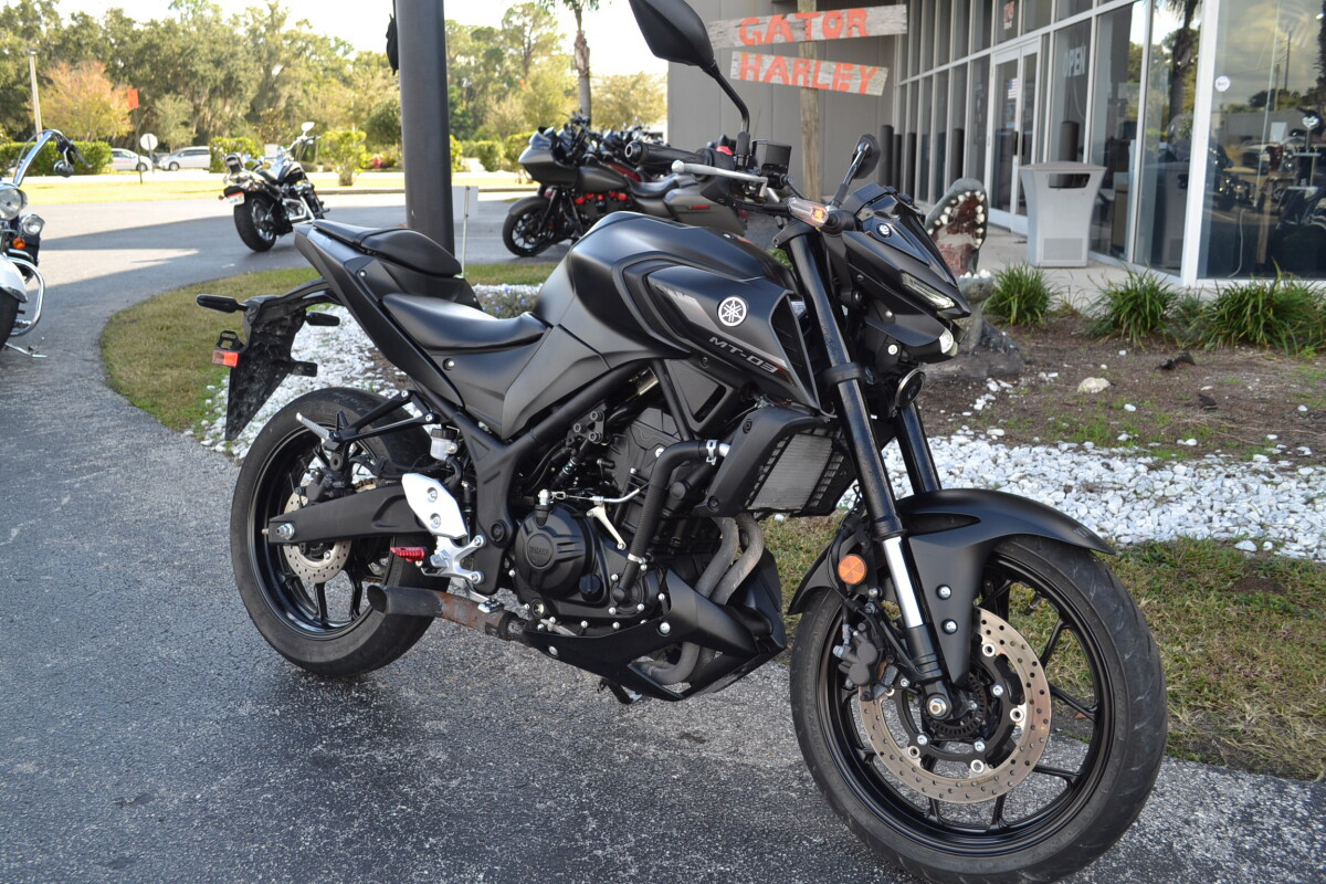 TOP FEATURESSmooth & Easy To Ride Power DeliveryThis 321cc liquid-cooled two-cylinder engine features lightweight forged pistons and carburized connecting rods, delivering easy to manage power in the low rpm range with strong high rpm power. The extremely light clutch feeling makes the MT-03 even more fun in the city, while its offset cylinders and advanced fuel injection system ensures smooth throttle response.DUAL POSITION LIGHTS WITH SINGULAR LED HEADLIGHTThe dynamic MT-03 looks cool with its dual angled position lights that emphasize its aggressive big-bike looks. A single compact and powerful LED headlight burns a hole through the darkness to light up the road ahead.POTENT TWIN-CYLINDER POWERPLANTYamaha’s 321cc liquid-cooled, inline two-cylinder engine delivers excellent power and performance throughout the rpm range. With a 180-degree crank design and integrated counterbalancer, the layout minimizes vibrations for a smooth, refined engine character.