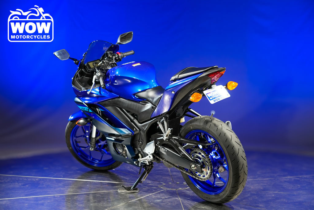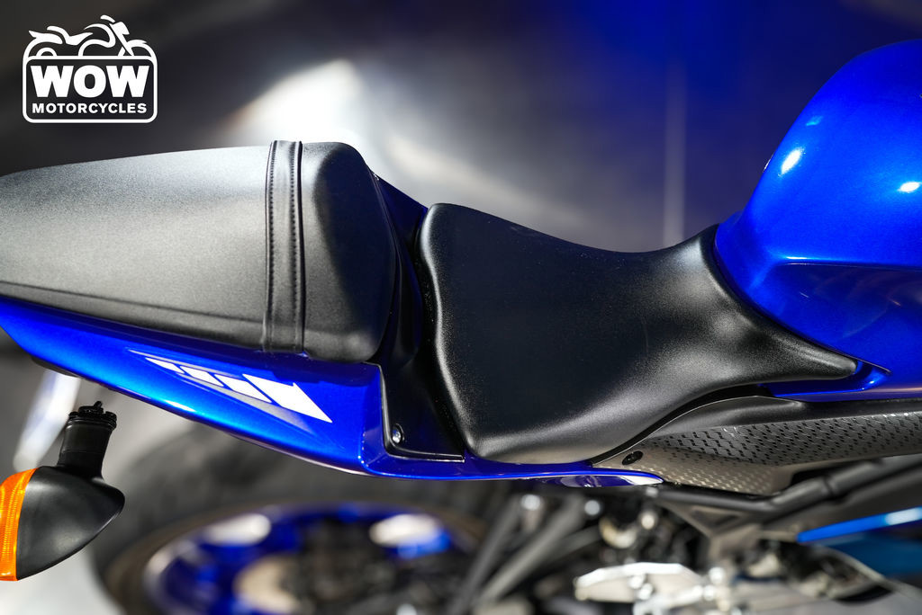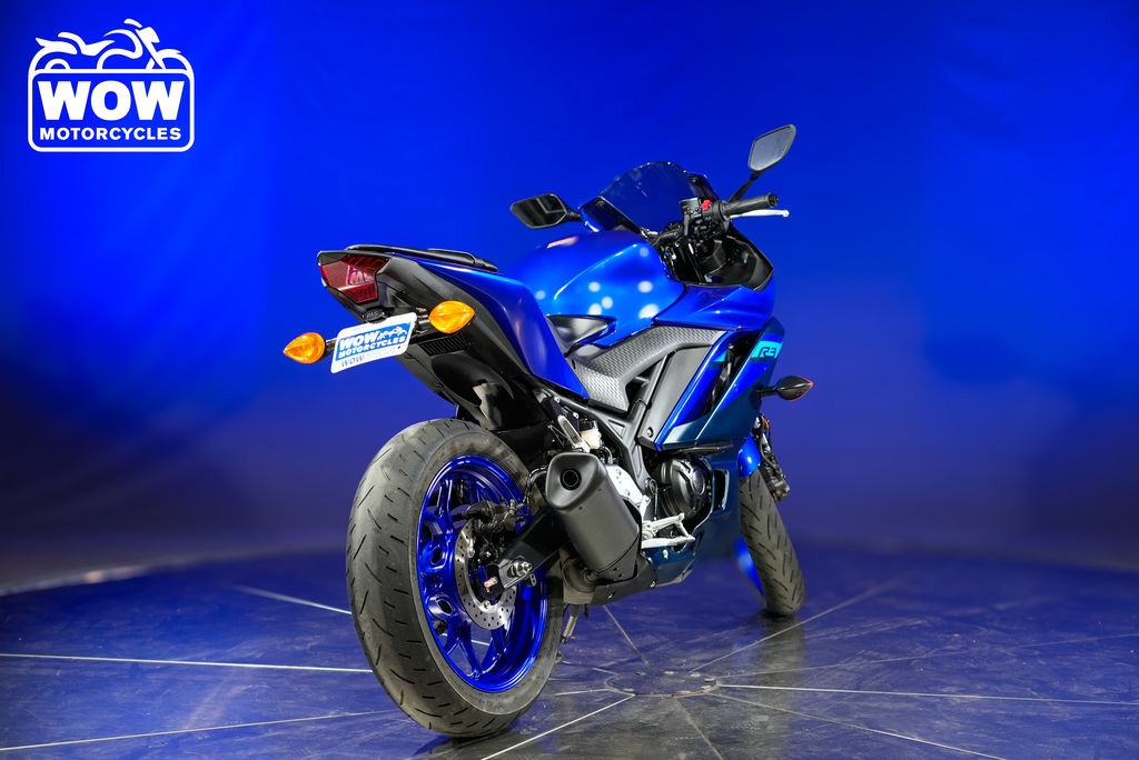 The 2024 Yamaha YZF-R3 is an entry-level supersport motorcycle that blends race-inspired aesthetics with user-friendly performance. Heavily influenced by the YZR-M1 MotoGP machine, it features an aerodynamic design and aggressive R-series styling. Key Performance Features Engine: A high-revving 321cc liquid-cooled, inline twin-cylinder engine delivering approximately 42 horsepower and smooth, linear power ideal for both city commuting and track days. Chassis: A lightweight diamond-type steel frame provides a slim and agile profile, weighing just 375 lbs with a full tank. Suspension: High-specification 37mm KYB inverted front forks and a preload-adjustable Monocross rear shock offer precise feedback and a balanced 50/50 weight distribution. Safety: Standard Anti-lock Braking System (ABS) paired with a 298mm floating front disc and a 220mm rear disc ensures confident stopping power. Design & Ergonomics MotoGP-Inspired Bodywork: Features a central air duct and sleek fairings that maximize cooling airflow and improve high-speed aerodynamics. Approachable Ergonomics: A low seat height of 30.7 inches and a low-profile fuel tank design allow for a natural grip and easy reach to the ground for most riders. Modern Lighting: Full LED headlights and taillights provide bright, long-lasting illumination and a sharp, contemporary look. Digital Dashboard: A multi-function LCD instrument panel displays gear position, fuel capacity, and real-time fuel economy. Technical Specifications Transmission: 6-speed. Fuel Capacity: 3.7 gallons. Fuel Economy: Approximately 56 mpg. Available Colors: Team Yamaha Blue and Vivid White.