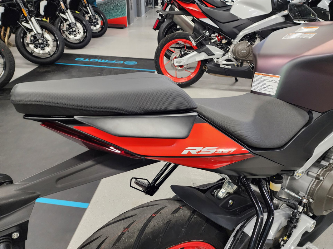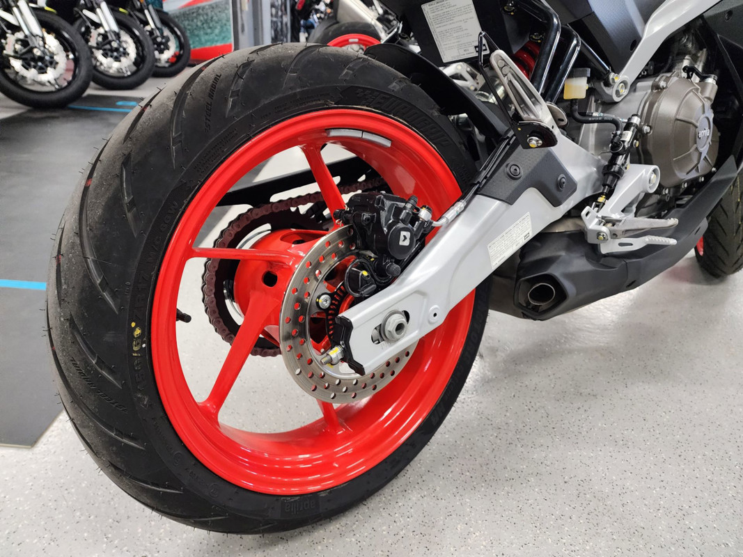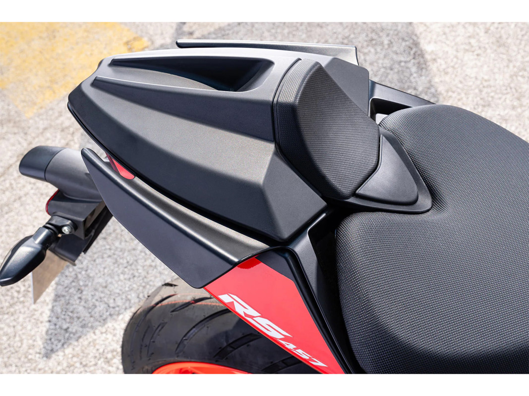 The Aprilia RS 457 speaks the language of riders who aren’t afraid to demand more and are ready to try a fully faired while looking for an authentic sports experience. In other words, it offers the best power-to-weight ratio. Sporting the hallmark RS family grunt and style, it makes a statement with its advanced technology and a chassis structure inherited from Aprilia’s supersport bikes. The RS 457 is an unadulterated invitation to take the plunge into the fascinating world of racing.