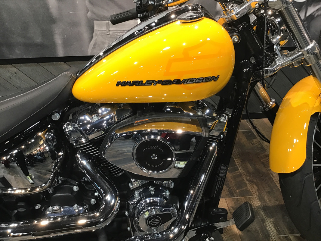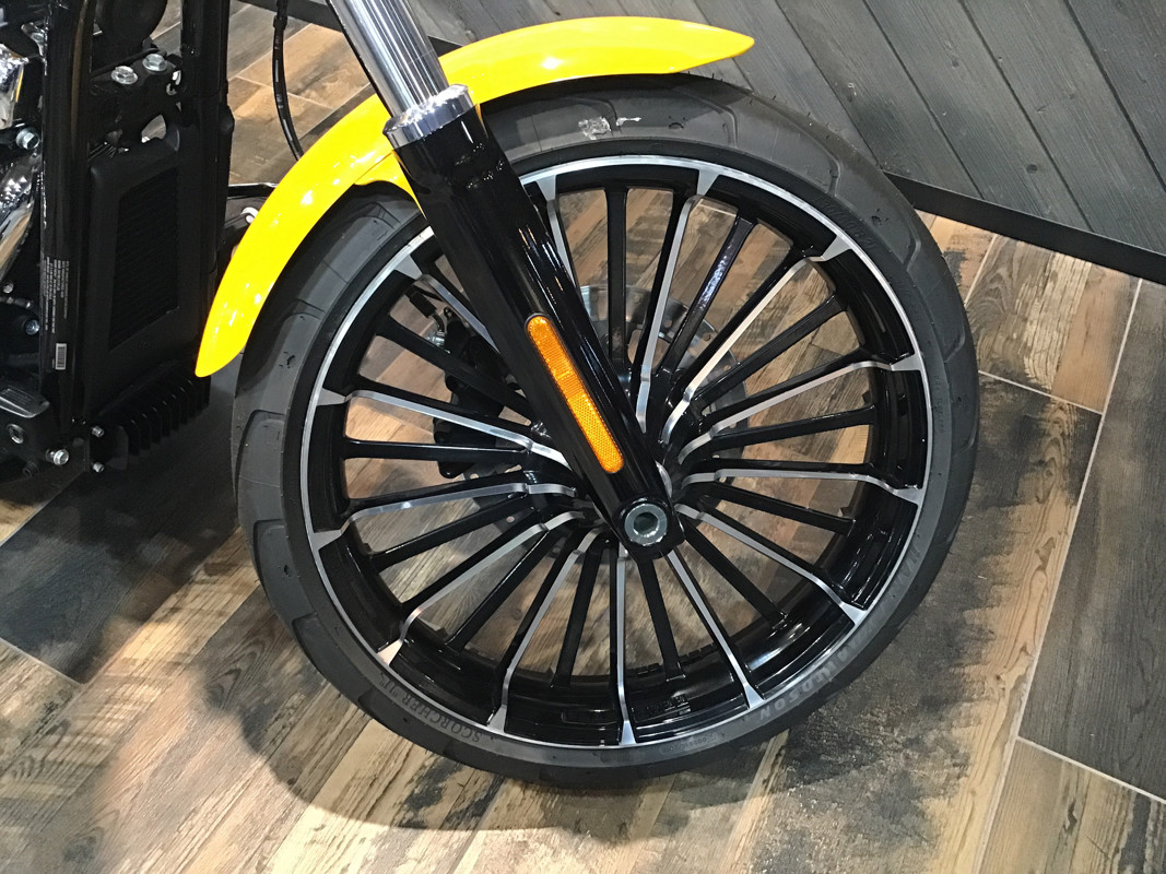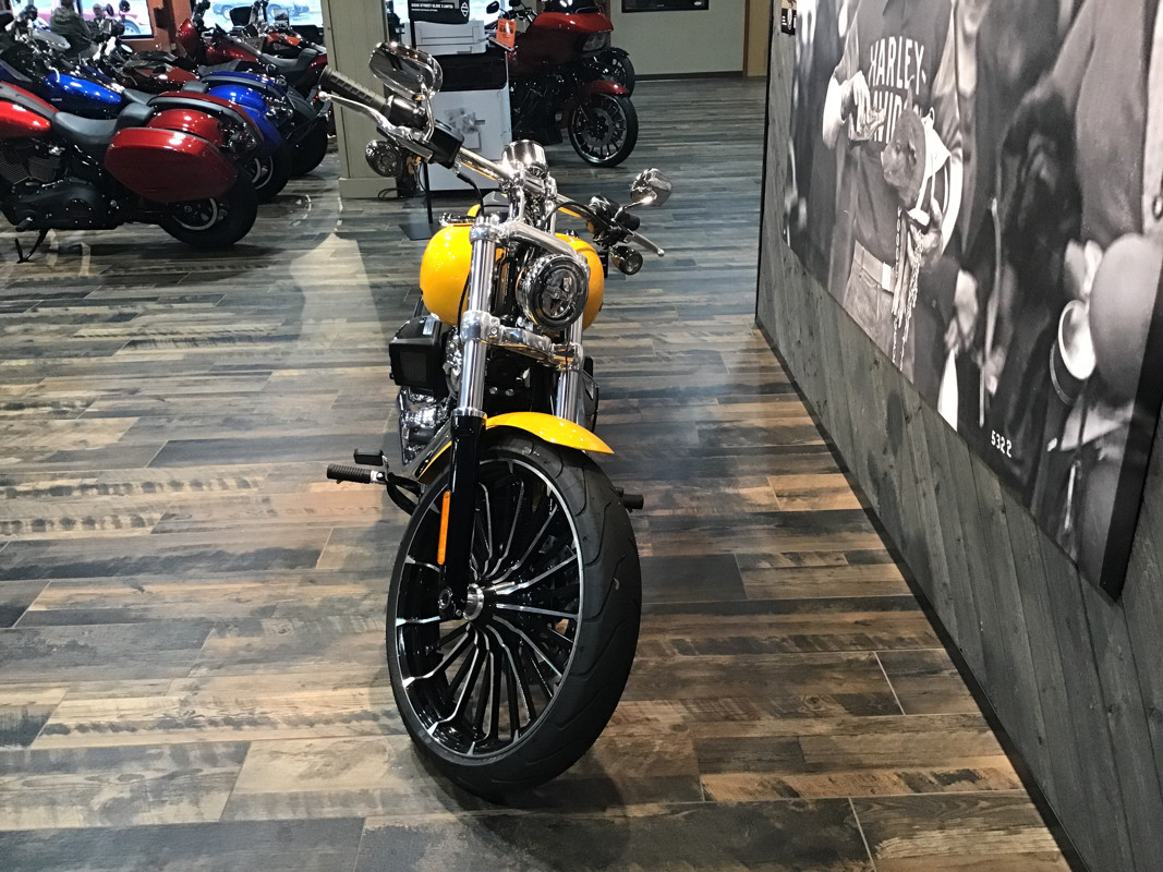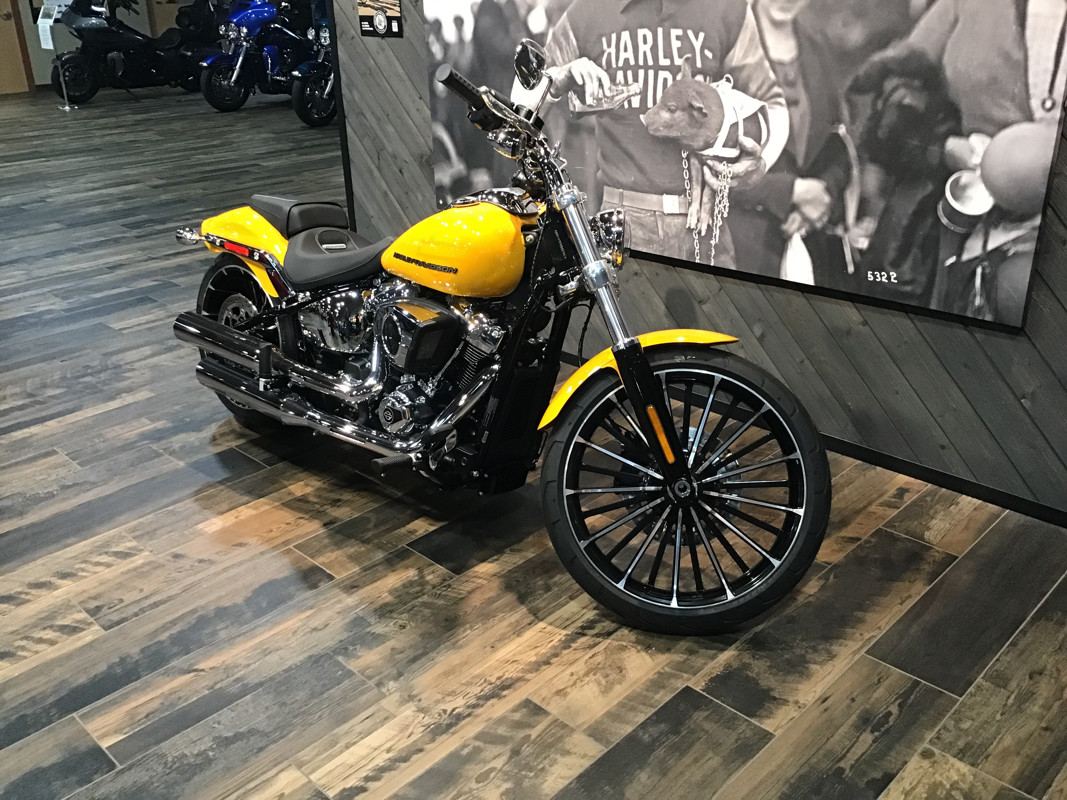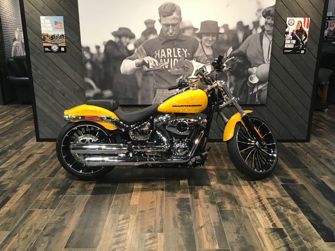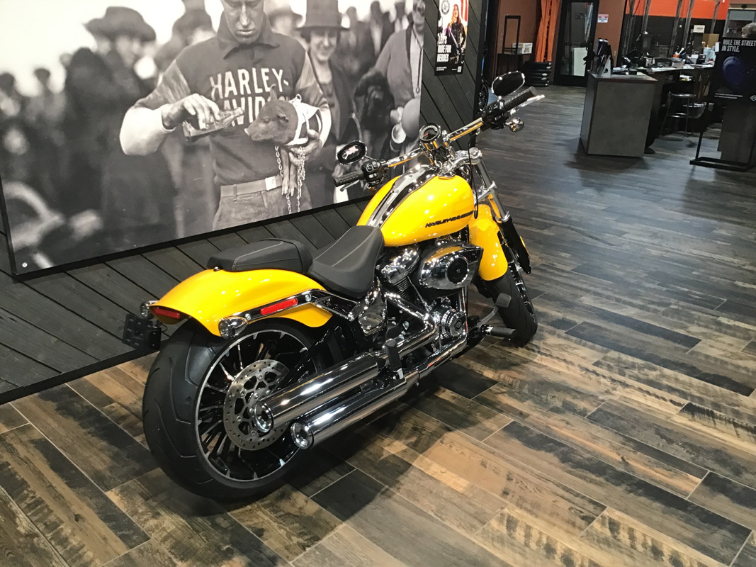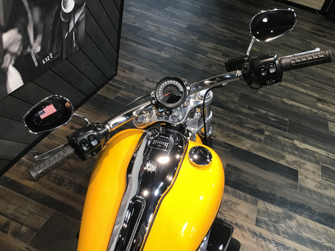 With a wide rear tire, bobtail rear fender, long rake, straight handlebars, and a 21-inch front wheel, the Breakout marries classic chopper style with the performance of a Milwaukee-Eight® 117 Custom powertrain.