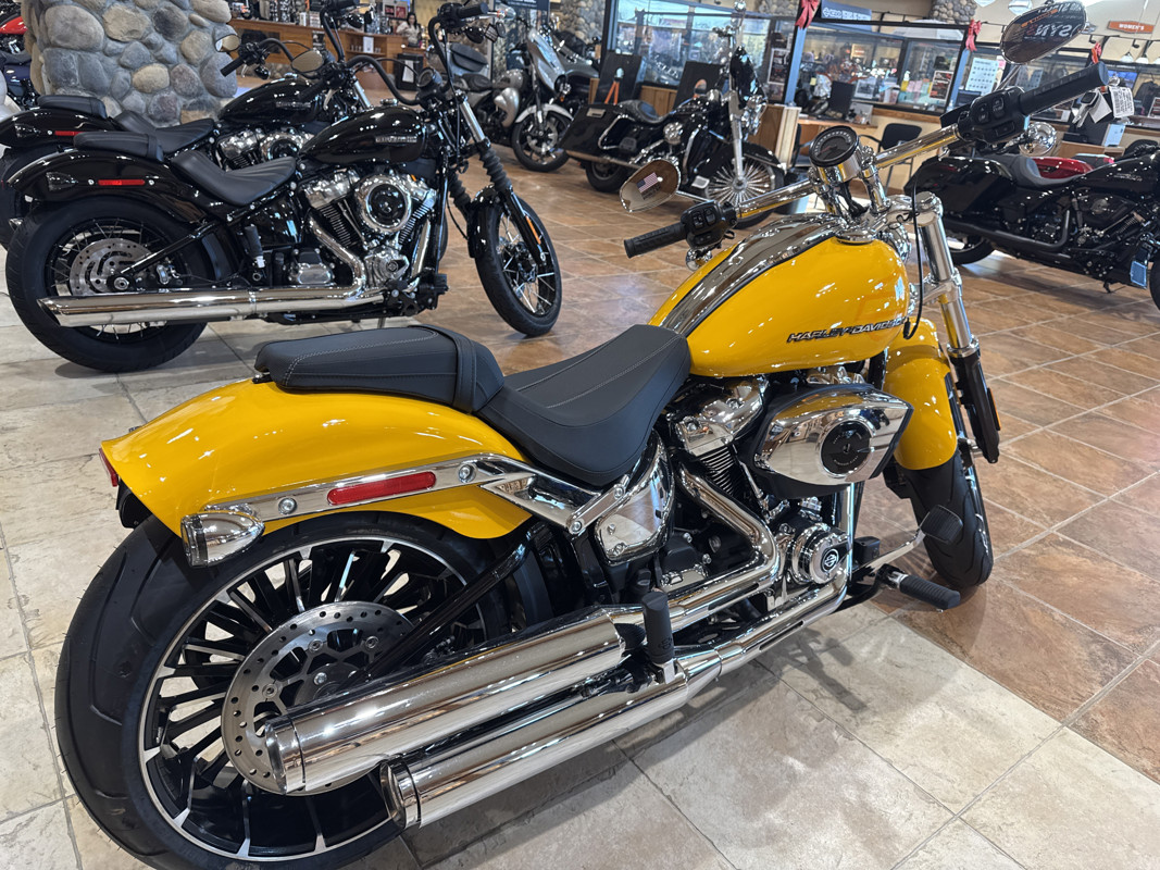 With a wide rear tire, bobtail rear fender, long rake, straight handlebars, and a 21-inch front wheel, the Breakout marries classic chopper style with the performance of a Milwaukee-Eight® 117 Custom powertrain.