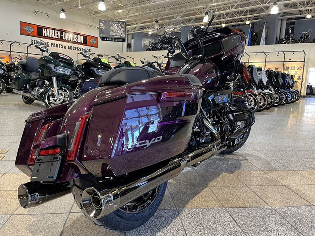 2025 Harley-Davidson® CVO™ Road Glide®Features may include:DESIGNPremium PaintCVO paint is the peak of craftsmanship, with layers that deliver unmatched depth and texture. Each model gets its own custom design, with perfectly matched trim and components to complete the package.FinishesPremium finishes and paint-matched components are different for each paint scheme, ensuring the highest level of custom feel and unique identity.New Cast WheelsUnique, lightweight cast wheels are complemented by top-shelf Brembo braking components.PERFORMANCEMilwaukee-Eight® VVT® 121 EnginePinnacle performance through a wide rev range, thanks to variable valve timing that changes performance based on RPM to deliver the most power possible.Rear Shocks Asymmetric rear shocks allow for quick preload adjustment, ensuring optimal performance regardless of changing payload.Front Forks 47mm SHOWA® inverted forks are comfortable and plush on the highway while maintaining confidence in corners.INNOVATIONSkyline™ OSConnected infotainment system has more to offer than ever with Wi-Fi-enabled Skyline OS, intuitive menu navigation, and enhanced on-the-fly map updates.12.3-Inch TFT DisplayA massive touchscreen is what you’d expect to see in modern luxury cars, providing bright and clear information at a glance, including ride modes.Rider Safety EnhancementsSubtle Rider Safety Enhancements help you get the most out of our biggest Milwaukee-Eight® VVT V-twin engine without interrupting your riding experience.