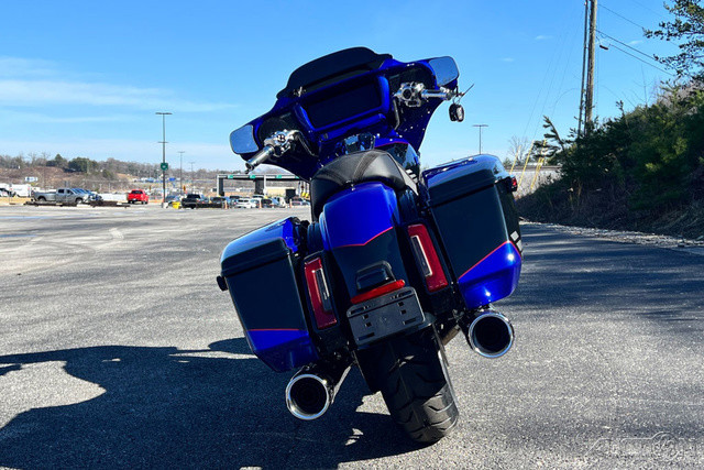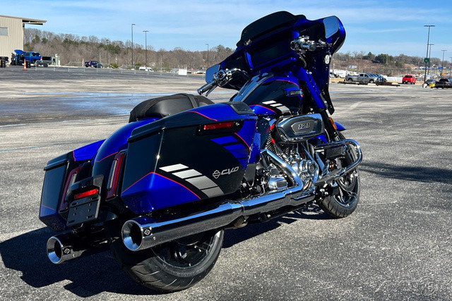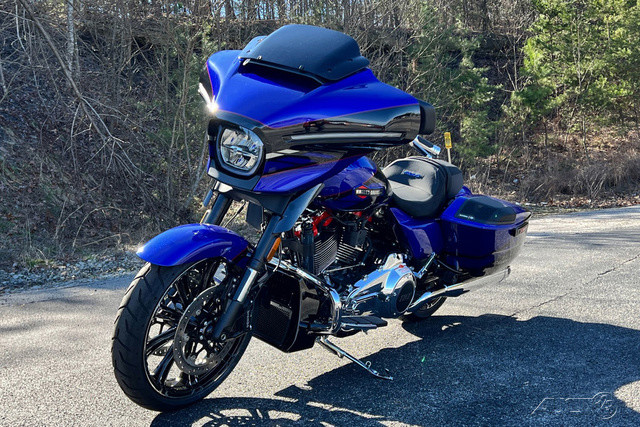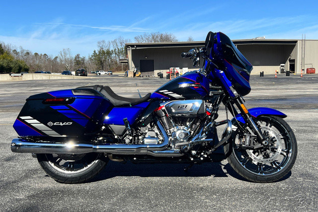 2025 Harley-Davidson® CVO™ Road Glide® STFeatures may include:DESIGNPremium Paint CVO paint is the peak of craftsmanship, with layers that deliver unmatched depth and texture. Each model gets its own custom design, with perfectly matched trim and components to complete the package.Premium FinishesChrome finishes and paint-matched components are different for each paint scheme, ensuring the highest level of custom feel and unique identity.New Cast WheelsUnique, lightweight cast wheels designed specifically for the 2025 CVO Street Glide are complemented by top-shelf Brembo braking components.PERFORMANCEMilwaukee-Eight® VVT 121 Engine Dynamic performance across a wide rev range, supported by variable valve timing that changes performance based on RPM to deliver the most power possible.Rear Shocks Asymmetric rear shocks allow for quick preload adjustment, ensuring optimal performance regardless of changing payload.Front Forks47mm SHOWA® inverted forks are comfortable and plush on the highway while maintaining confidence in fast corners.INNOVATIONSkyline™ OS Connected infotainment system has Wi-Fi-enabled Skyline OS, intuitive menu navigation, and enhanced on-the-fly map updates.12.3-Inch TFT DisplayA massive touchscreen you would expect in the latest luxury cars, providing bright and clear information, including ride modes.