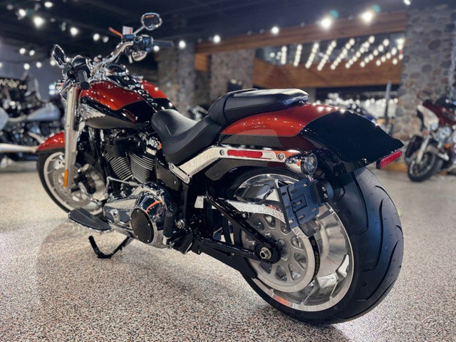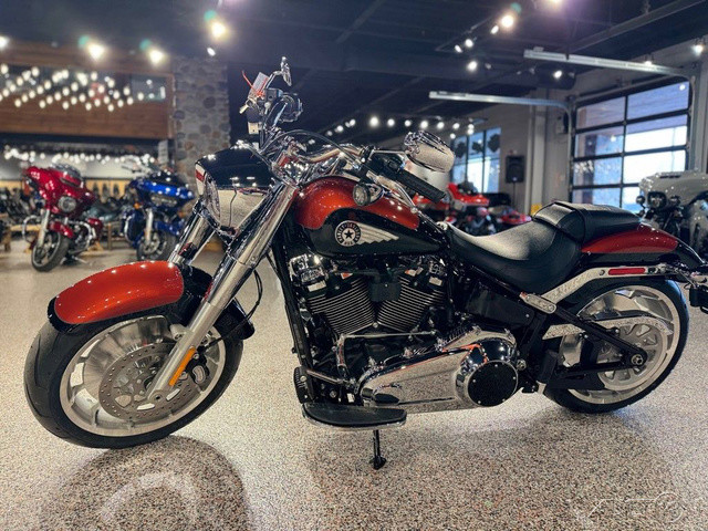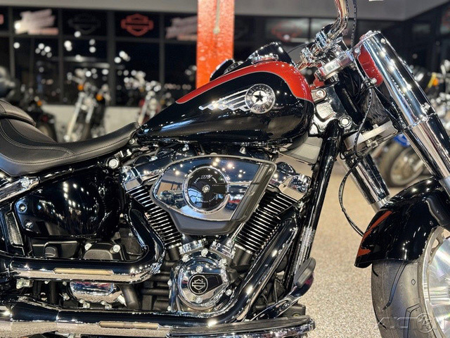 2025 Harley-Davidson® Fat Boy® Features may include: DESIGN Paint The best factory paint in the world covers a classic rounded gas tank that is finished with a new, bold tank medallion. Wheels 18-inch machined Lakester wheels with massive tires are covered by cutback fenders for powerful stance and commanding presence. Headlamp Nacelle The iconic Fat Boy headlight nacelle shines in bright polished chrome, accentuating the large and muscular look of the front end. PERFORMANCE Milwaukee-Eight® 117 Custom Engine Milwaukee-Eight® 117 Custom V-twin engine delivers sound, feel, and all the power you need for effortless long-mile highway cruising or exhilarating in-town performance. Rear Suspension Updated monoshock suspension is more comfortable while still firm and composed during aggressive riding. Two-into-Two Exhaust A key feature of Fat Boy design, the two-into-two exhaust has been updated for high-flowing performance and a rich V-twin sound. INNOVATION Five-Inch Analog Display Analog gauge is clear and easy to read, while an integrated digital display shows key information like Ride Modes. Hand Controls Updated hand controls accommodate Cruise Control and newly integrated tech features, including Ride Modes and Traction Control. USB-C Charging USB-C charging keeps your devices powered, so you can ride farther while using navigation, listening to music, and staying connected through your Bluetooth® headset.