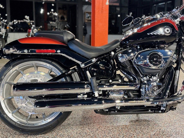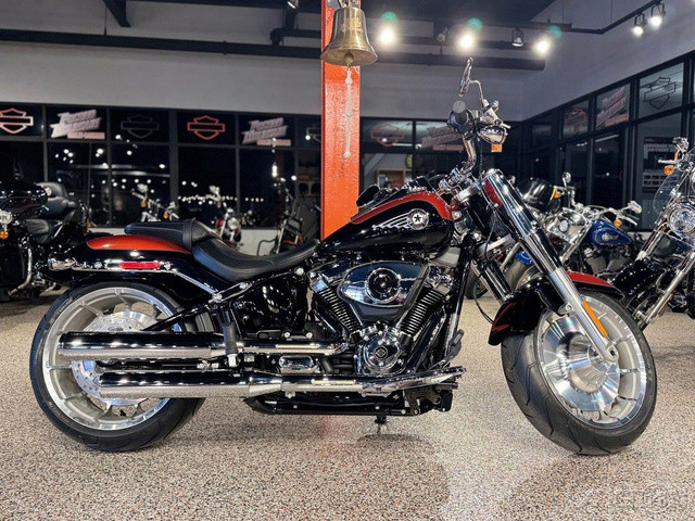 2025 Harley-Davidson® Fat Boy® Features may include: DESIGN Paint The best factory paint in the world covers a classic rounded gas tank that is finished with a new, bold tank medallion. Wheels 18-inch machined Lakester wheels with massive tires are covered by cutback fenders for powerful stance and commanding presence. Headlamp Nacelle The iconic Fat Boy headlight nacelle shines in bright polished chrome, accentuating the large and muscular look of the front end. PERFORMANCE Milwaukee-Eight® 117 Custom Engine Milwaukee-Eight® 117 Custom V-twin engine delivers sound, feel, and all the power you need for effortless long-mile highway cruising or exhilarating in-town performance. Rear Suspension Updated monoshock suspension is more comfortable while still firm and composed during aggressive riding. Two-into-Two Exhaust A key feature of Fat Boy design, the two-into-two exhaust has been updated for high-flowing performance and a rich V-twin sound. INNOVATION Five-Inch Analog Display Analog gauge is clear and easy to read, while an integrated digital display shows key information like Ride Modes. Hand Controls Updated hand controls accommodate Cruise Control and newly integrated tech features, including Ride Modes and Traction Control. USB-C Charging USB-C charging keeps your devices powered, so you can ride farther while using navigation, listening to music, and staying connected through your Bluetooth® headset.