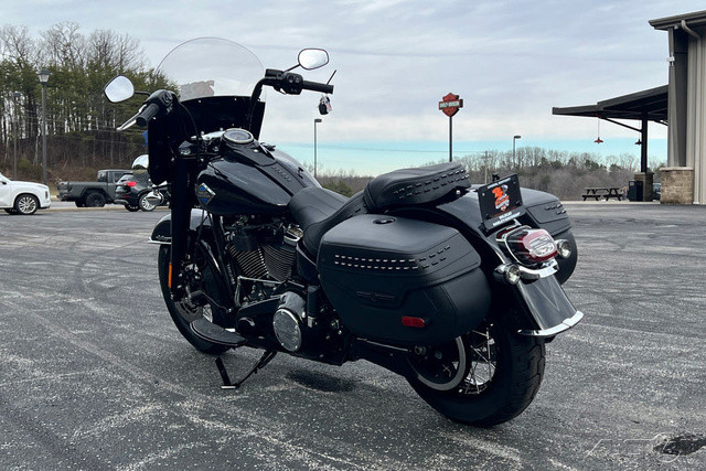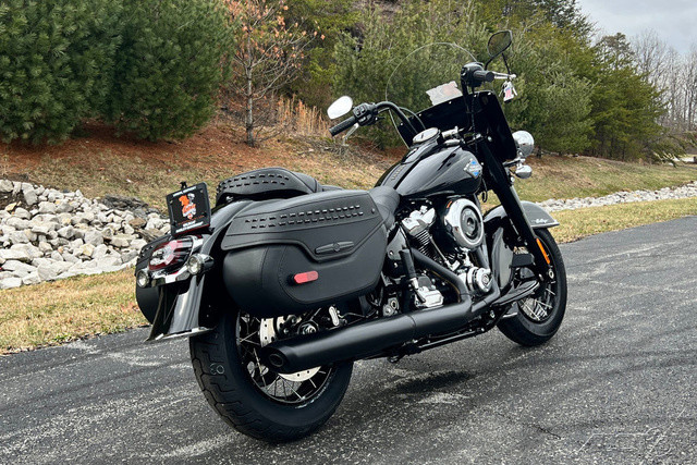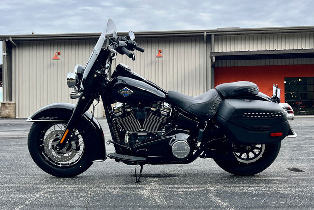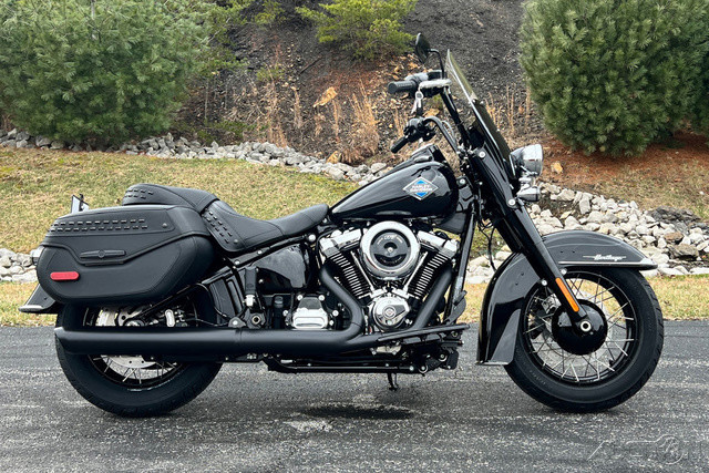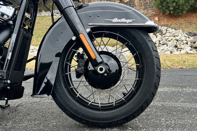 2025 Harley-Davidson® Heritage Classic Features may include: DESIGN Paint + Graphics From deep, lustrous black to two-toned Whiskey Fire/Vivid Black, the 2025 Heritage Classic is available in a color that matches your personal style and complements the classic rounded fuel tank and medallion. Saddlebags Leather-studded style with the versatility of hard-framed, weather-proof bags that have keyed locks and top-loading convenience. LED Lighting See and be seen with bright white LED headlight, bold auxiliary lights, and LED turn signals and brake light. PERFORMANCE Milwaukee-Eight® 117 Classic Engine Effortless highway cruising with plenty of passing power, thanks to the new, larger displacement Milwaukee-Eight® 117 Classic engine. Two-Into-Two Exhaust Compact, lightweight design tuned for performance and sound while providing a low, sweeping visual line with nostalgic style. INTAKE Classic intake shape matches throwback design while updated filter maximizes airflow and performance. Rear Suspension Updated monoshock features under-the-seat preload adjustment to adapt for an added passenger or loaded-up saddlebags quickly and easily INNOVATION Five-Inch Analog Display The nostalgic style of an analog gauge supported by a digital display that facilitates changes to Ride Modes. Hand Controls Updated hand controls accommodate the addition of Ride Modes, Traction Control, and Cruise Control. USB-C Charging USB-C charging keeps your devices powered, so you can ride farther while using navigation, listening to music, and staying connected through your Bluetooth® headset. ADJUSTABLE BRAKE LEVER Tune brake lever distance to your precise preference with a quick-adjust knob