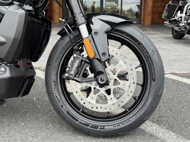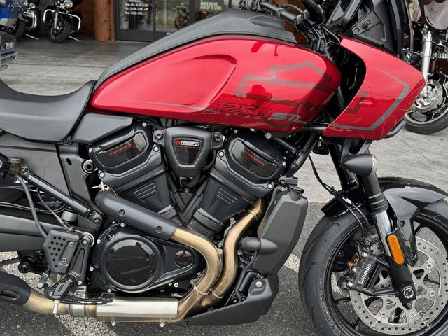 2025 Harley-Davidson® Pan America® 1250 STFeatures may include:DESIGNLower SeatAn all-new, one-piece seat lowers the rider's height for easier mounting and confident footing at stops. Its shape supports aggressive cornering while ensuring comfort and control.Front FenderStreet-style lower fender hugs the Michelin® Scorcher Sport tire for a sleeker, more aerodynamic design.Blacked-Out StylingFrom the lightweight muffler to the front cylinder, the blacked-out powertrain is raw and aggressive, but also subtle and understated.PERFORMANCERevolution® Max 1250 Engine The liquid-cooled Revolution Max 1250 has a broad powerband with 149 horsepower and 94 ft-lb of torque at its peak. Integrated into the chassis as a load-bearing element, this engine not only shaves off weight but also improves rigidity for a more responsive ride.WheelsThe 17-inch cast-aluminum wheels are built for fast handling and come stock with Michelin Scorcher Sport tires, boosting your street performance for sharper, more responsive rides.Adaptive Ride HeightStandard on North American models, Adaptive Ride Height (ARH) drops up to one inch in a stopped position, allowing you to mount or dismount the Pan America 1250 ST with ease and confidence.SuspensionLowered suspension drops the center of gravity and eliminates unneeded ground clearance for optimal road performance. SHOWA® Balance Free 47mm forks and a SHOWA Balance Free monoshock feature electronically adjustable pre-load and manually adjustable compression and rebound.BrakesDual front Brembo Monoblock radially mounted four-piston calipers and hub-mounted 320mm brake rotors provide incredible stopping power with direct lever feel, while trailing in the rear are a single-piston Brembo caliper and 280mm rotor.QuickshifterClick through the gears, up and down, without clutching or worrying about damaging your transmission. Quick, smooth shifts are achieved with little more than a tap of the foot, optimizing acceleration and keeping your focus on the road.