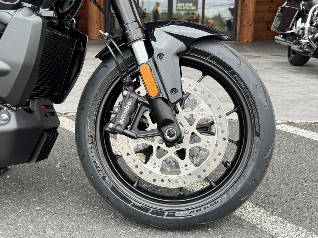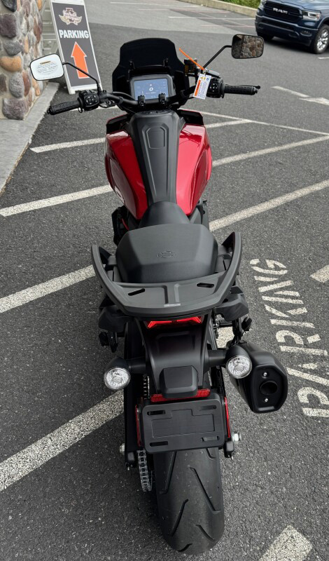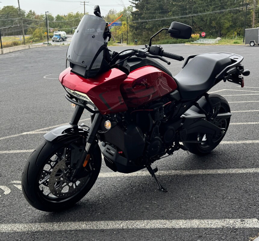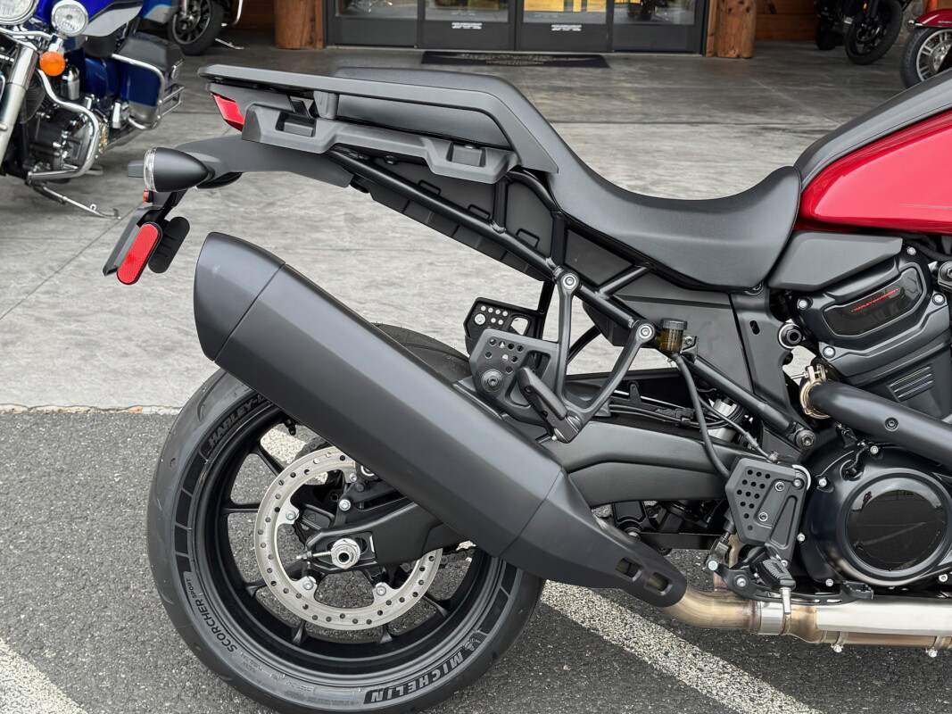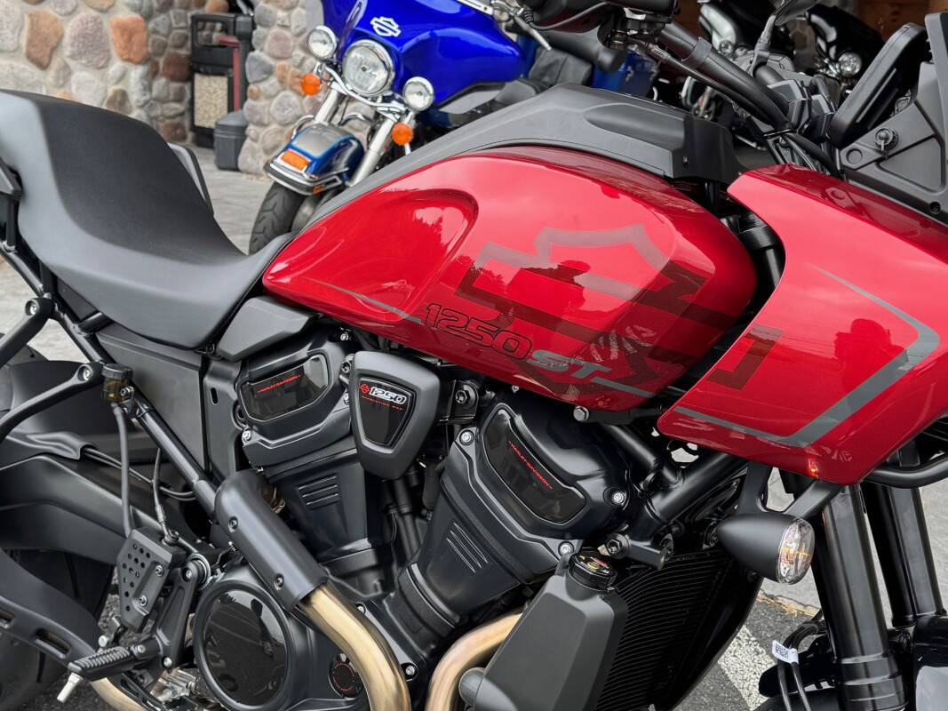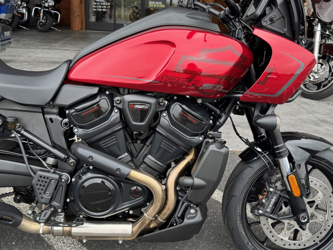 2025 Harley-Davidson Pan America 1250 ST Features may include: DESIGNLower Seat An all-new, one-piece seat lowers the rider's height for easier mounting and confident footing at stops. Its shape supports aggressive cornering while ensuring comfort and control. Front Fender Street-style lower fender hugs the Michelin Scorcher Sport tire for a sleeker, more aerodynamic design. Blacked-Out Styling From the lightweight muffler to the front cylinder, the blacked-out powertrain is raw and aggressive, but also subtle and understated. PERFORMANCERevolution Max 1250 Engine The liquid-cooled Revolution Max 1250 has a broad powerband with 149 horsepower and 94 ft-lb of torque at its peak. Integrated into the chassis as a load-bearing element, this engine not only shaves off weight but also improves rigidity for a more responsive ride. Wheels The 17-inch cast-aluminum wheels are built for fast handling and come stock with Michelin Scorcher Sport tires, boosting your street performance for sharper, more responsive rides. Adaptive Ride Height Standard on North American models, Adaptive Ride Height (ARH) drops up to one inch in a stopped position, allowing you to mount or dismount the Pan America 1250 ST with ease and confidence. Suspension Lowered suspension drops the center of gravity and eliminates unneeded ground clearance for optimal road performance. SHOWA Balance Free 47mm forks and a SHOWA Balance Free monoshock feature electronically adjustable pre-load and manually adjustable compression and rebound. Brakes Dual front Brembo Monoblock radially mounted four-piston calipers and hub-mounted 320mm brake rotors provide incredible stopping power with direct lever feel, while trailing in the rear are a single-piston Brembo caliper and 280mm rotor. Quickshifter Click through the gears, up and down, without clutching or worrying about damaging your transmission. Quick, smooth shifts are achieved with little more than a tap of the foot, optimizing acceleration and keeping your focus on the road.