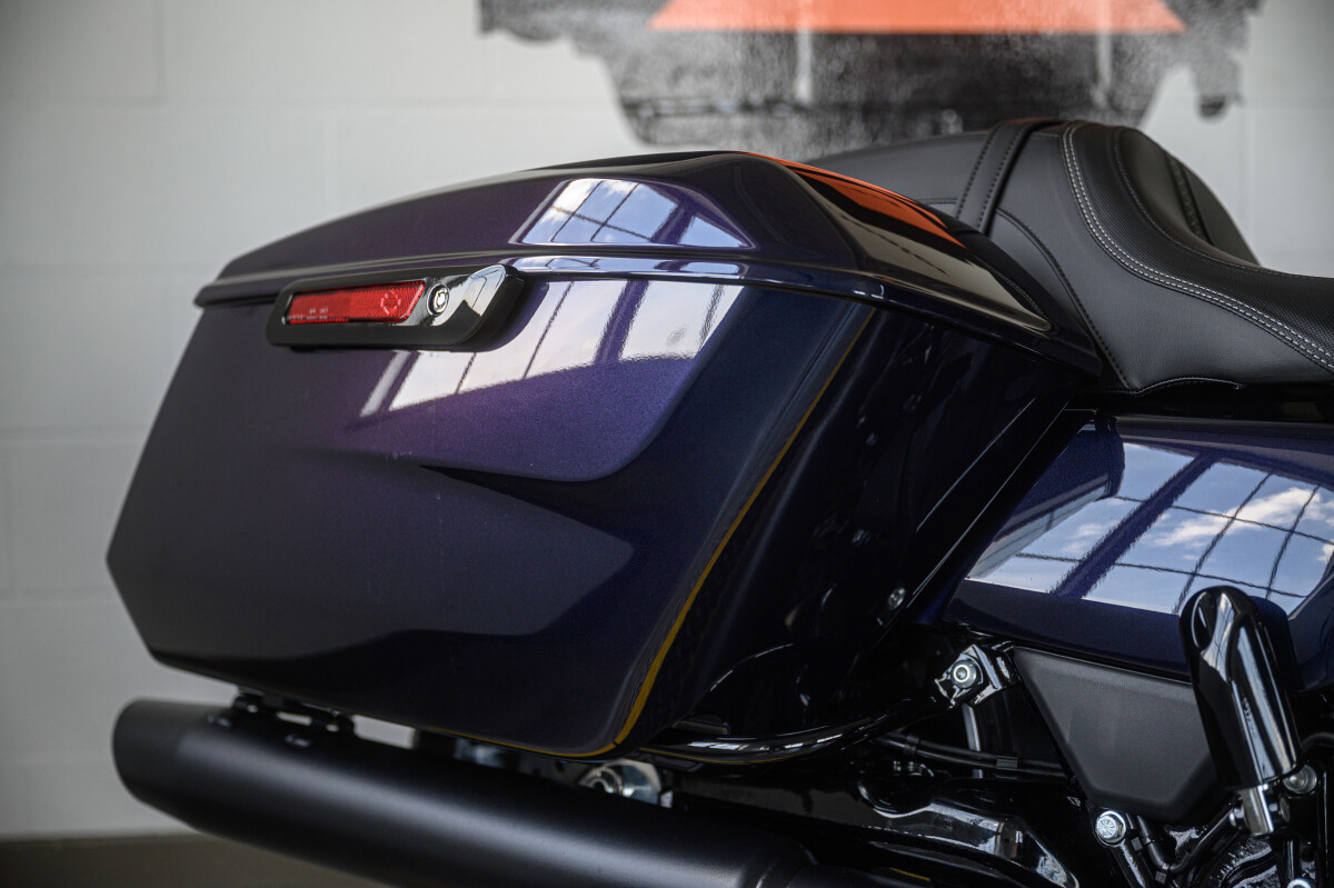 The Road Glide has an aerodynamic Sharknose fairing and a liquid-cooled Milwaukee-Eight 117 engine that produces 130 ft-lb of torque, while reduced weight makes handling more responsive. With customizable ride modes, Bluetooth connectivity, and a 12.3-inch touchscreen display, the Road Glide offers a refined mix of tech, style, and power.