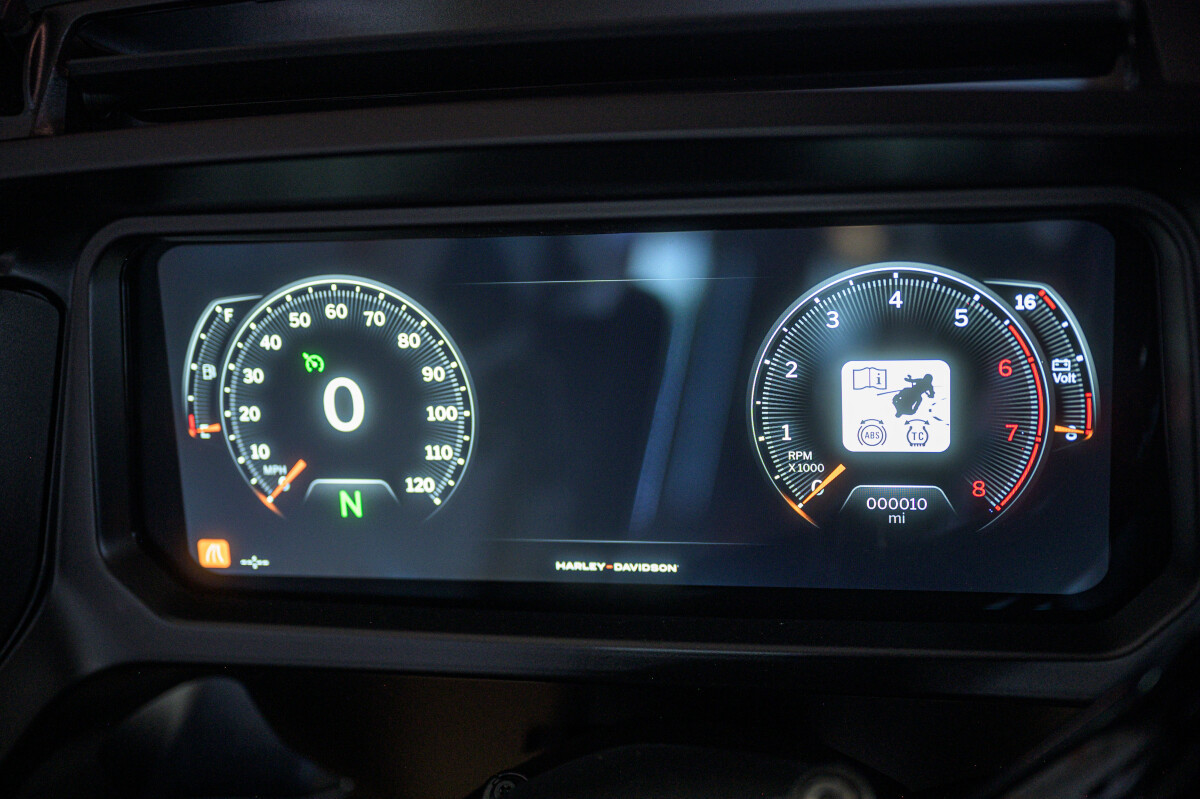 The Road Glide has an aerodynamic Sharknose fairing and a liquid-cooled Milwaukee-Eight 117 engine that produces 130 ft-lb of torque, while reduced weight makes handling more responsive. With customizable ride modes, Bluetooth connectivity, and a 12.3-inch touchscreen display, the Road Glide offers a refined mix of tech, style, and power.