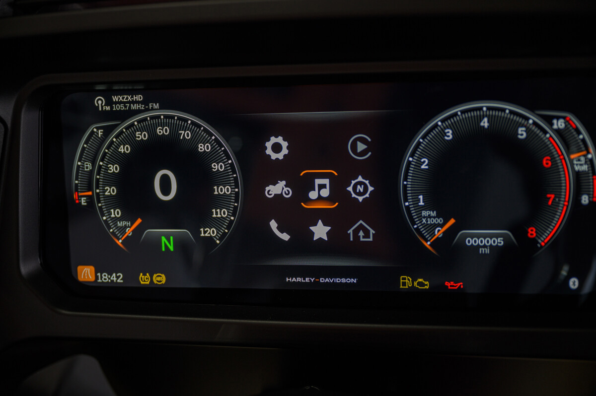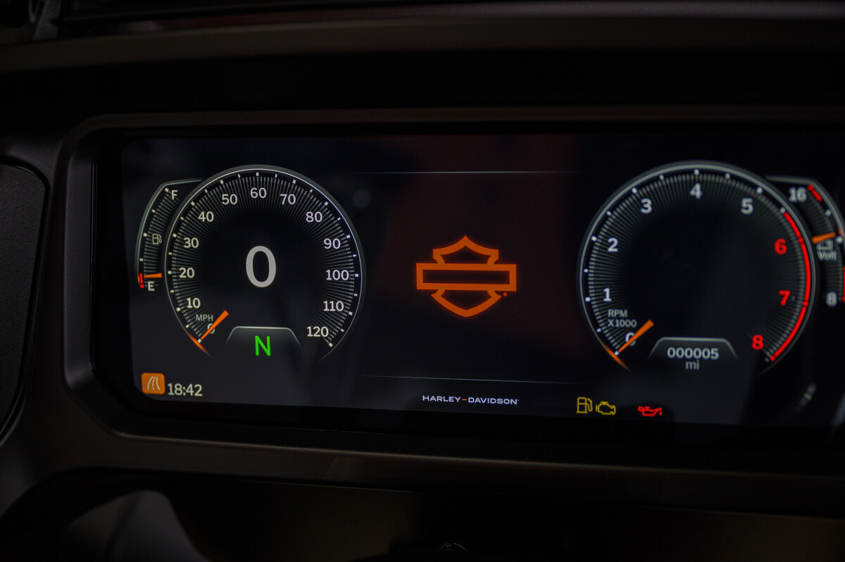 The Road Glide has an aerodynamic Sharknose fairing and a liquid-cooled Milwaukee-Eight 117 engine that produces 130 ft-lb of torque, while reduced weight makes handling more responsive. With customizable ride modes, Bluetooth connectivity, and a 12.3-inch touchscreen display, the Road Glide offers a refined mix of tech, style, and power.