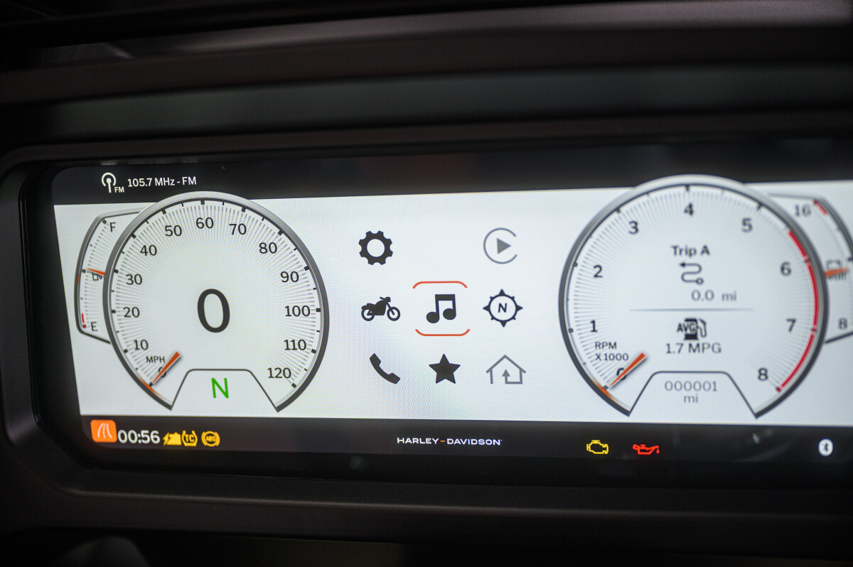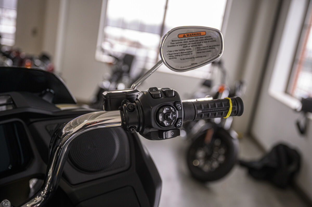 The Road Glide has an aerodynamic Sharknose fairing and a liquid-cooled Milwaukee-Eight 117 engine that produces 130 ft-lb of torque, while reduced weight makes handling more responsive. With customizable ride modes, Bluetooth connectivity, and a 12.3-inch touchscreen display, the Road Glide offers a refined mix of tech, style, and power.