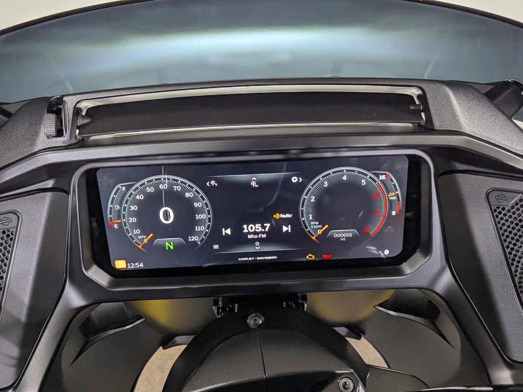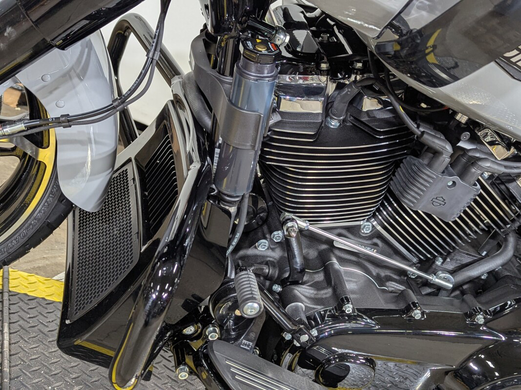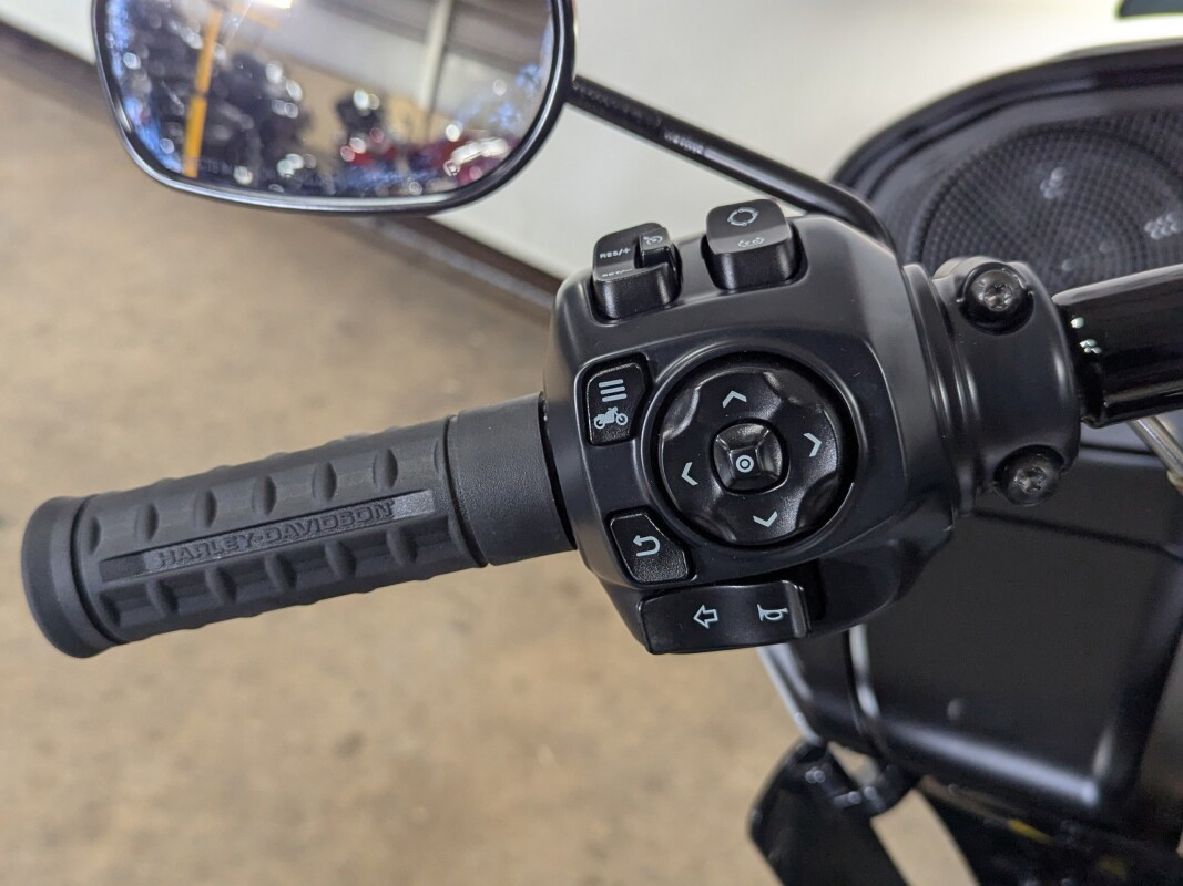 The Road Glide has an aerodynamic Sharknose fairing and a liquid-cooled Milwaukee-Eight 117 engine that produces 130 ft-lb of torque, while reduced weight makes handling more responsive. With customizable ride modes, Bluetooth connectivity, and a 12.3-inch touchscreen display, the Road Glide offers a refined mix of tech, style, and power.