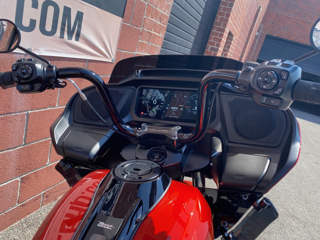 The Road Glide has an aerodynamic Sharknose fairing and a liquid-cooled Milwaukee-Eight 117 engine that produces 130 ft-lb of torque, while reduced weight makes handling more responsive. With customizable ride modes, Bluetooth connectivity, and a 12.3-inch touchscreen display, the Road Glide offers a refined mix of tech, style, and power.