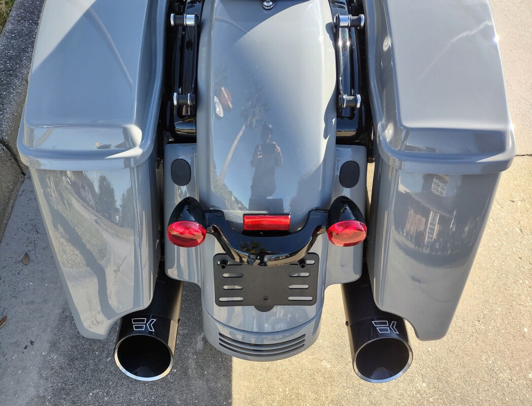Drenched in black from headlamp to exhaust tips, the 2025 Road King Special has custom bagger style with touring comfort and capability. Its fairing-free design, mini “ape hanger” handlebars, Milwaukee-Eight 114 V-twin engine, and subtly integrated tech ensure you get the most out of every ride.