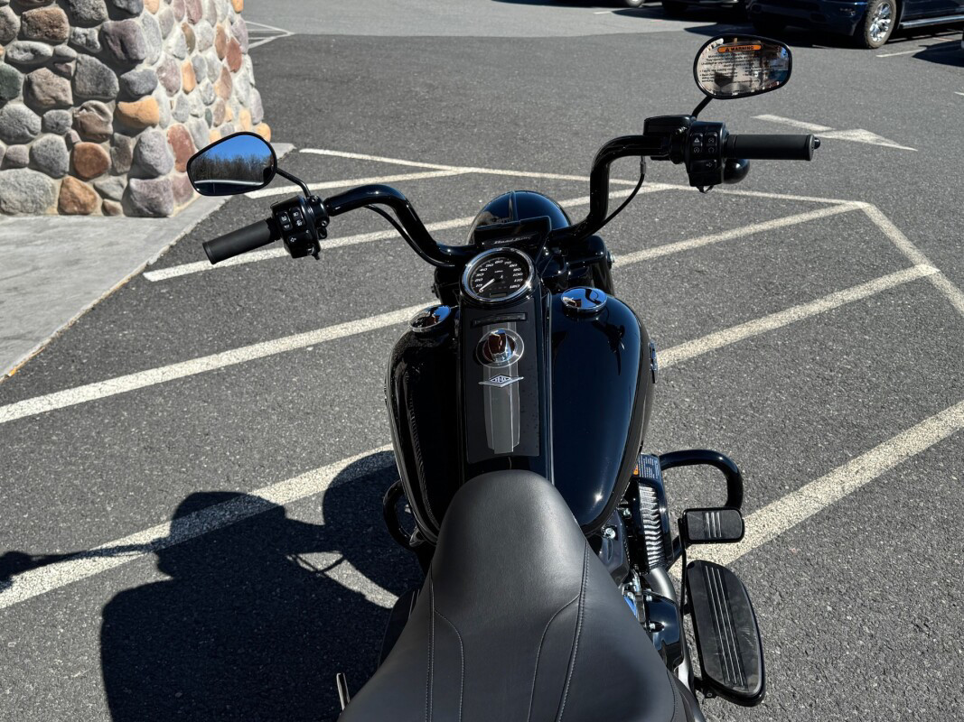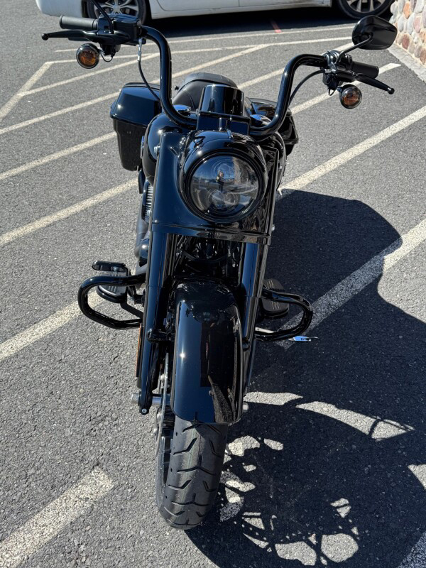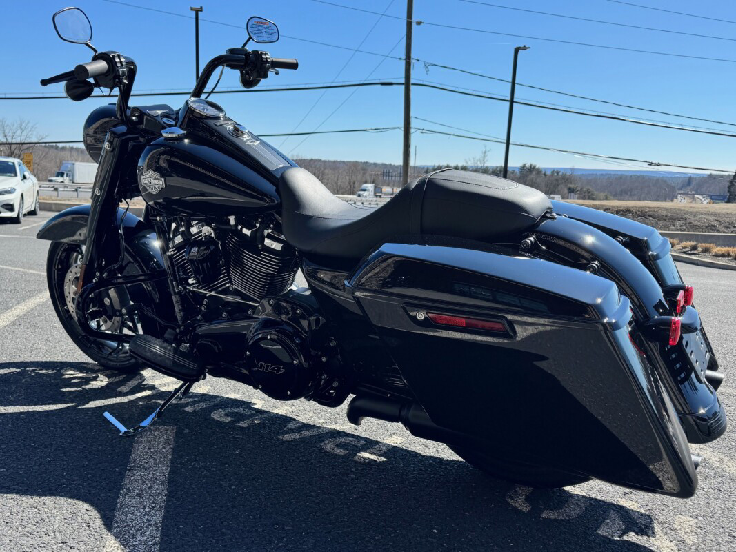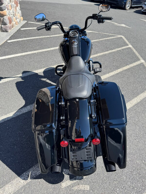 Drenched in black from headlamp to exhaust tips, the 2025 Road King Special has custom bagger style with touring comfort and capability. Its fairing-free design, mini “ape hanger” handlebars, Milwaukee-Eight 114 V-twin engine, and subtly integrated tech ensure you get the most out of every ride.