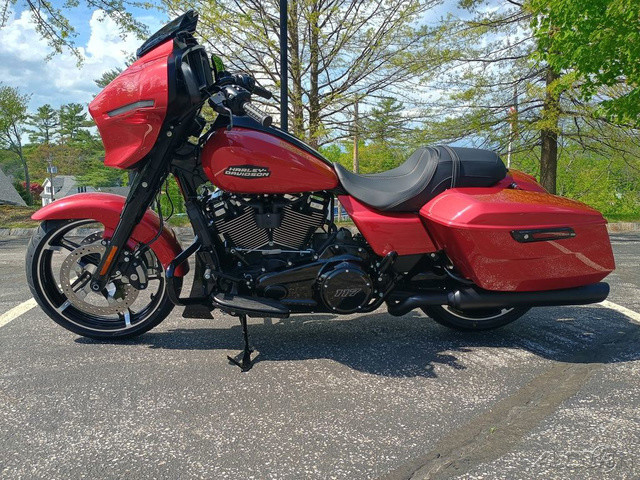 2025 Harley-Davidson® Street Glide®Features may include:DESIGNIconic Batwing fairing has LED lighting seamlessly integrated into its shape and aerodynamics optimized for rider comfort. Blacked-out or polished engine finish options, contrast-cut wheels, and a stunning display of paint options, including three unique Factory Custom styles.FairingThe iconic Batwing fairing has been designed with computational fluid dynamics (CFD) to improve aerodynamics and overall rider comfort, as well as visual flow.LED Signature Lighting LED signature lighting is integrated into the bodywork, providing on-road visibility and creating a sleek, seamless visual flow.Wheels18 inches in the rear and 19 inches in the front, contrast-cut wheels give the Street Glide a powerful stance and modern style while providing excellent on-road performance.PERFORMANCEA powerful Milwaukee-Eight® 117 stays cool with liquid-cooled cylinder heads and breathes easy with a high-flowing intake. Quickly adjustable rear suspension maximizes performance no matter where the road takes you.Milwaukee-Eight® 117 V-Twin EngineBig V-twin power without the heat. Equipped with liquid-cooled heads and a discrete center-mounted radiator, it ensures efficient cooling even on the hottest rides.Rear SuspensionEasily adjust preload for passenger or luggage, maximizing comfort and performance in every setting.Performance IntakeHigh-performance touring intake increases internal volume for improved airflow and engine performance.INNOVATIONThe classic look of the Street Glide boasts a world of modern tech and innovation, with comfort features designed to keep you riding as long as you want.12.3-Inch TFT DisplayThe crystal-clear, 12.3-inch touchscreen color TFT display puts navigation and infotainment at your fingertips.Ride ModesThree pre-programmed ride modes allow you to change the Street Glide’s personality with the push of a button. Change from Road to Sport to Rain, or use the customizable mode to dial in your exact tuning preference.AudioThe deep lows, clean mids, and crips highs of your favorite songs play through fairing-mounted speakers, powered by a 200-watt, four-channel amplifier rated at 50 watts per channel.
