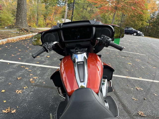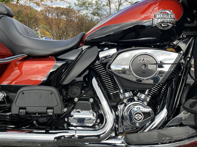 2025 Harley-Davidson® Street Glide® UltraFeatures may include:DESIGNStreet Glide style dressed up with long-mile amenities, including heated grips and a plush two-up seat to keep both you and your passenger comfortable and confident on every ride.Fairing + Tall WindshieldThe iconic Batwing fairing has been designed and sculpted using computational fluid dynamics (CFD), wind-tunnel testing, and time on the road to improve comfort and reduce buffeting. New clear windshield is four inches taller than standard Street Glide models and reduces helmet buffeting by up to 60 percent.Two-Up Comfort SeatDesigned for all-day, two-up riding, the new seat ergonomically rotates the rider’s hips forward to relieve spine pressure.StorageKing Tour-Pak® luggage carrier comes standard and has a robust passenger back pad with armrests. The hard-shell luggage carrier, fairing cubbies, and large saddlebags offer 4.9 cubic feet of combined storage—more than twice that on a standard Street Glide.PERFORMANCEMore power to cover ground in style and comfort, and strong brakes and suspension to lead the pack when the road starts to twist.Milwaukee-Eight® 117 V-Twin EngineGiving you more torque and horsepower than the Twin-Cooled 114, the Milwaukee-Eight® 117 has liquid-cooled cylinder heads and a centrally located radiator that sends air directly into the intake for quicker cooling.Rear ShocksWith three inches of travel, SHOWA® dual outboard emulsion technology shocks provide a responsive and consistent ride. Remote hydraulic preload adjustments are made quickly and easily by hand.INNOVATIONA classic silhouette boasts a host of modern tech and innovation, from comfort features to Rider Safety Enhancements that help keep you out on the road longer.12.3-Inch TFT DisplayOur most advanced display, the crystal-clear, 12.3-Inch touchscreen color TFT with Skyline™ OS lets you easily access infotainment, navigation, switch between the bike’s four ride modes, and more.Vehicle Hold ControlWhen stopped on an incline or a decline, squeeze and release the front brake lever to activate Vehicle Hold Control and keep the Street Glide Ultra from rolling.NavigationHands-free Voice Recognition System makes built-in navigation easier to use, with simple conversational commands like, “Find me a gas station.”