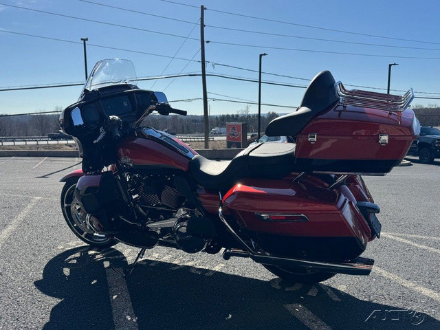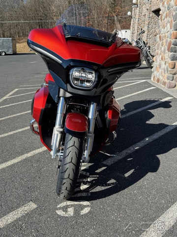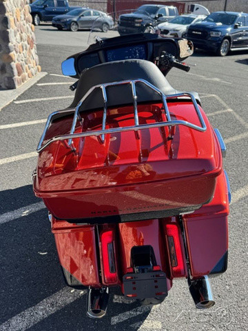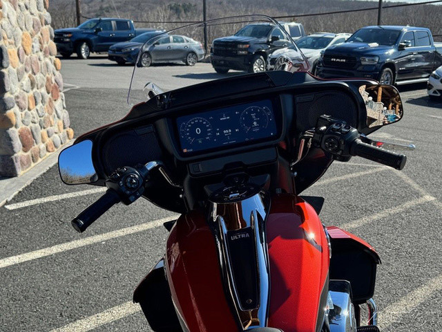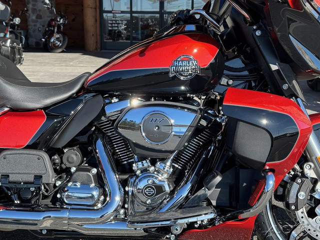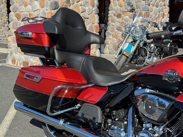 2025 Harley-Davidson® Street Glide® UltraFeatures may include:DESIGNStreet Glide style dressed up with long-mile amenities, including heated grips and a plush two-up seat to keep both you and your passenger comfortable and confident on every ride.Fairing + Tall WindshieldThe iconic Batwing fairing has been designed and sculpted using computational fluid dynamics (CFD), wind-tunnel testing, and time on the road to improve comfort and reduce buffeting. New clear windshield is four inches taller than standard Street Glide models and reduces helmet buffeting by up to 60 percent.Two-Up Comfort SeatDesigned for all-day, two-up riding, the new seat ergonomically rotates the rider’s hips forward to relieve spine pressure.StorageKing Tour-Pak® luggage carrier comes standard and has a robust passenger back pad with armrests. The hard-shell luggage carrier, fairing cubbies, and large saddlebags offer 4.9 cubic feet of combined storage—more than twice that on a standard Street Glide.PERFORMANCEMore power to cover ground in style and comfort, and strong brakes and suspension to lead the pack when the road starts to twist.Milwaukee-Eight® 117 V-Twin EngineGiving you more torque and horsepower than the Twin-Cooled 114, the Milwaukee-Eight® 117 has liquid-cooled cylinder heads and a centrally located radiator that sends air directly into the intake for quicker cooling.Rear ShocksWith three inches of travel, SHOWA® dual outboard emulsion technology shocks provide a responsive and consistent ride. Remote hydraulic preload adjustments are made quickly and easily by hand.INNOVATIONA classic silhouette boasts a host of modern tech and innovation, from comfort features to Rider Safety Enhancements that help keep you out on the road longer.12.3-Inch TFT DisplayOur most advanced display, the crystal-clear, 12.3-Inch touchscreen color TFT with Skyline™ OS lets you easily access infotainment, navigation, switch between the bike’s four ride modes, and more.Vehicle Hold ControlWhen stopped on an incline or a decline, squeeze and release the front brake lever to activate Vehicle Hold Control and keep the Street Glide Ultra from rolling.NavigationHands-free Voice Recognition System makes built-in navigation easier to use, with simple conversational commands like, “Find me a gas station.”