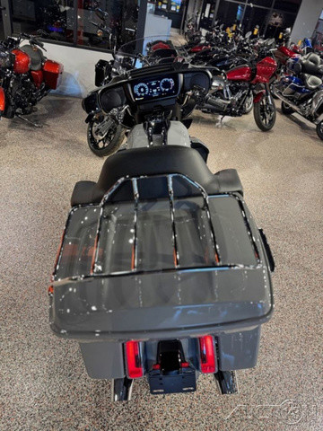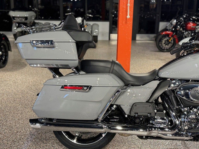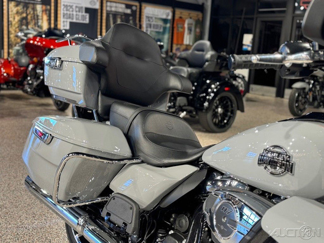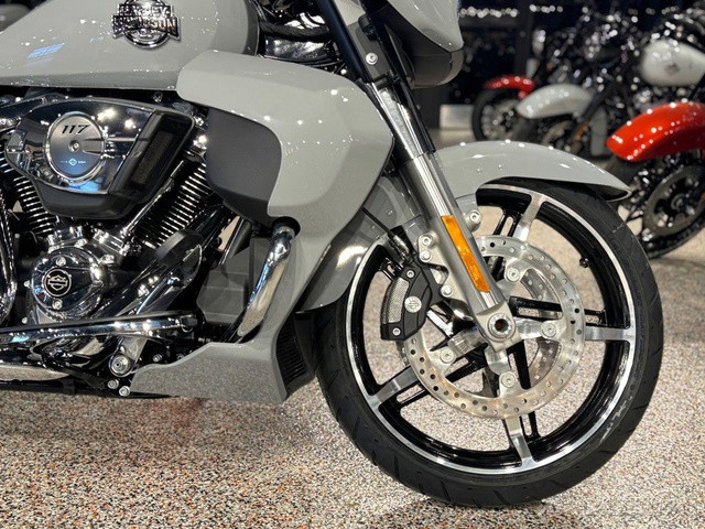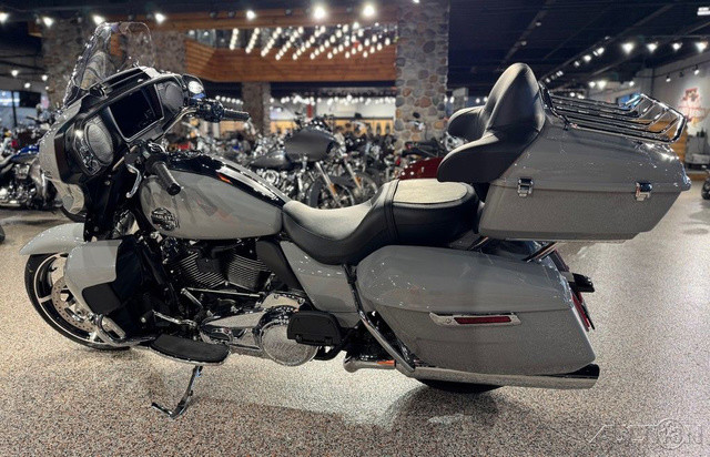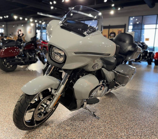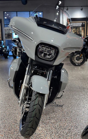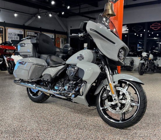 2025 Harley-Davidson® Street Glide® UltraFeatures may include:DESIGNStreet Glide style dressed up with long-mile amenities, including heated grips and a plush two-up seat to keep both you and your passenger comfortable and confident on every ride.Fairing + Tall WindshieldThe iconic Batwing fairing has been designed and sculpted using computational fluid dynamics (CFD), wind-tunnel testing, and time on the road to improve comfort and reduce buffeting. New clear windshield is four inches taller than standard Street Glide models and reduces helmet buffeting by up to 60 percent.Two-Up Comfort SeatDesigned for all-day, two-up riding, the new seat ergonomically rotates the rider’s hips forward to relieve spine pressure.StorageKing Tour-Pak® luggage carrier comes standard and has a robust passenger back pad with armrests. The hard-shell luggage carrier, fairing cubbies, and large saddlebags offer 4.9 cubic feet of combined storage—more than twice that on a standard Street Glide.PERFORMANCEMore power to cover ground in style and comfort, and strong brakes and suspension to lead the pack when the road starts to twist.Milwaukee-Eight® 117 V-Twin EngineGiving you more torque and horsepower than the Twin-Cooled 114, the Milwaukee-Eight® 117 has liquid-cooled cylinder heads and a centrally located radiator that sends air directly into the intake for quicker cooling.Rear ShocksWith three inches of travel, SHOWA® dual outboard emulsion technology shocks provide a responsive and consistent ride. Remote hydraulic preload adjustments are made quickly and easily by hand.INNOVATIONA classic silhouette boasts a host of modern tech and innovation, from comfort features to Rider Safety Enhancements that help keep you out on the road longer.12.3-Inch TFT DisplayOur most advanced display, the crystal-clear, 12.3-Inch touchscreen color TFT with Skyline™ OS lets you easily access infotainment, navigation, switch between the bike’s four ride modes, and more.Vehicle Hold ControlWhen stopped on an incline or a decline, squeeze and release the front brake lever to activate Vehicle Hold Control and keep the Street Glide Ultra from rolling.NavigationHands-free Voice Recognition System makes built-in navigation easier to use, with simple conversational commands like, “Find me a gas station.”